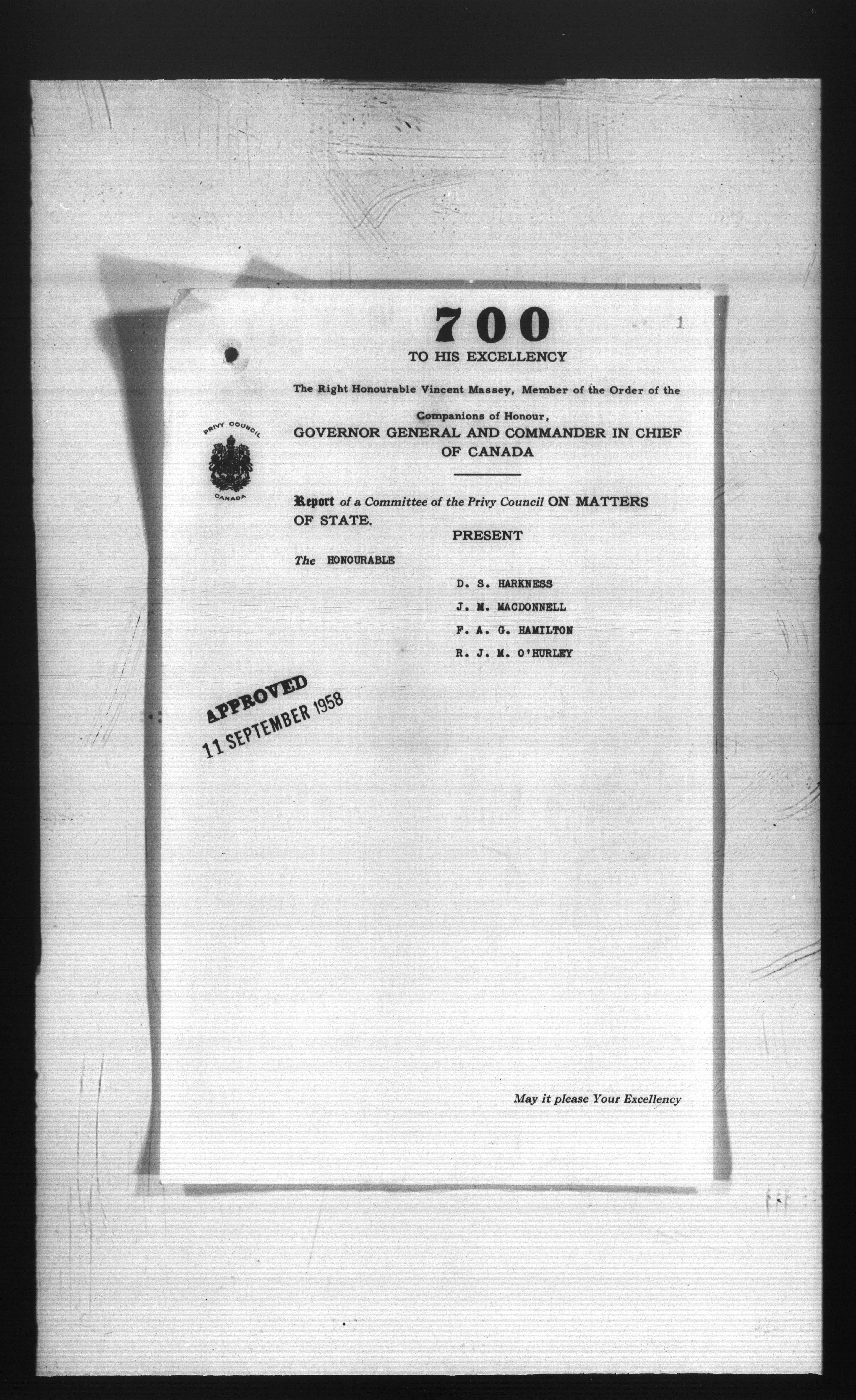 Privy Council Office, Orders in Council : Minutes, annexes and reports - 5312