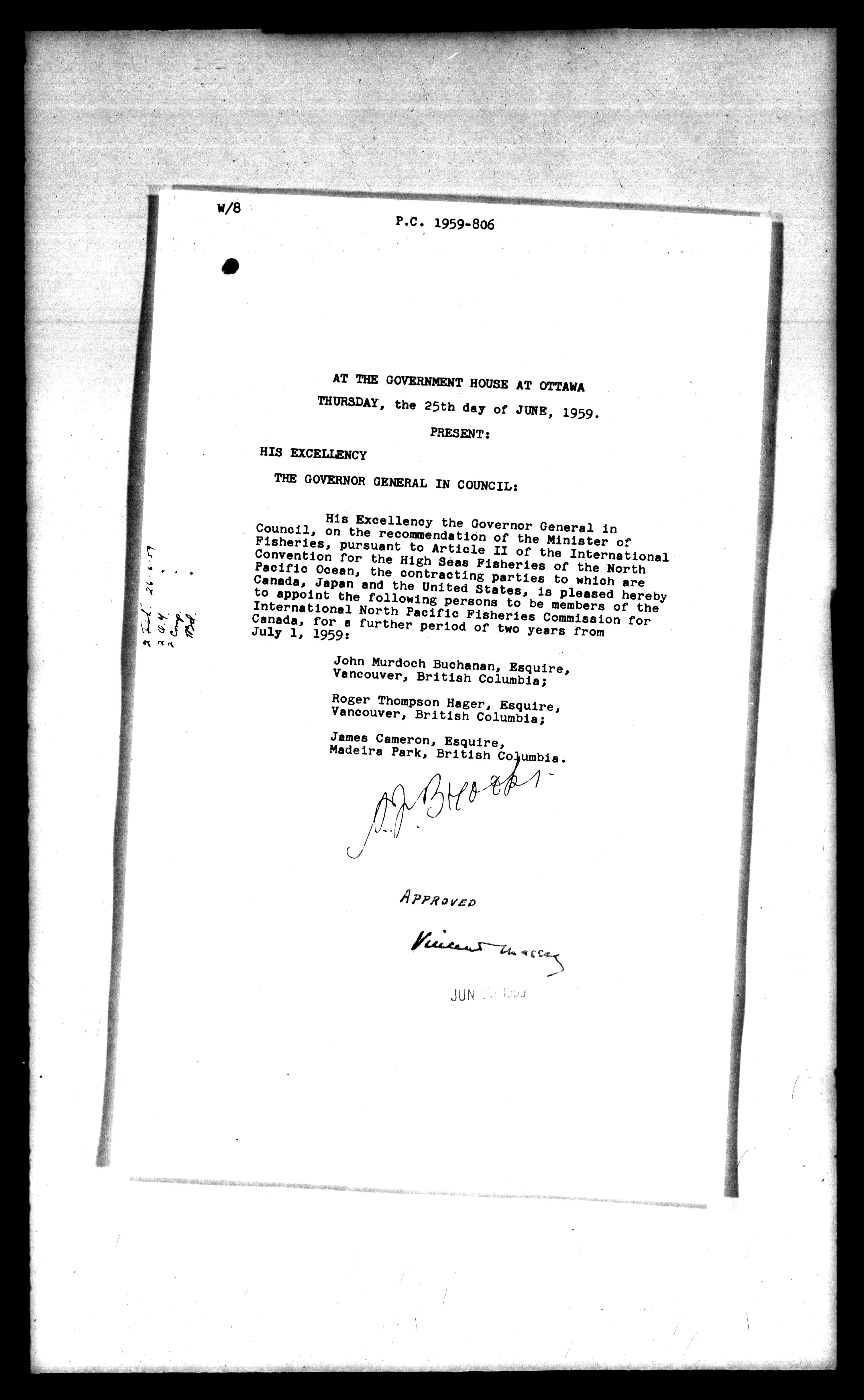 Privy Council Office, Orders in Council : Minutes, annexes and reports - 5321
