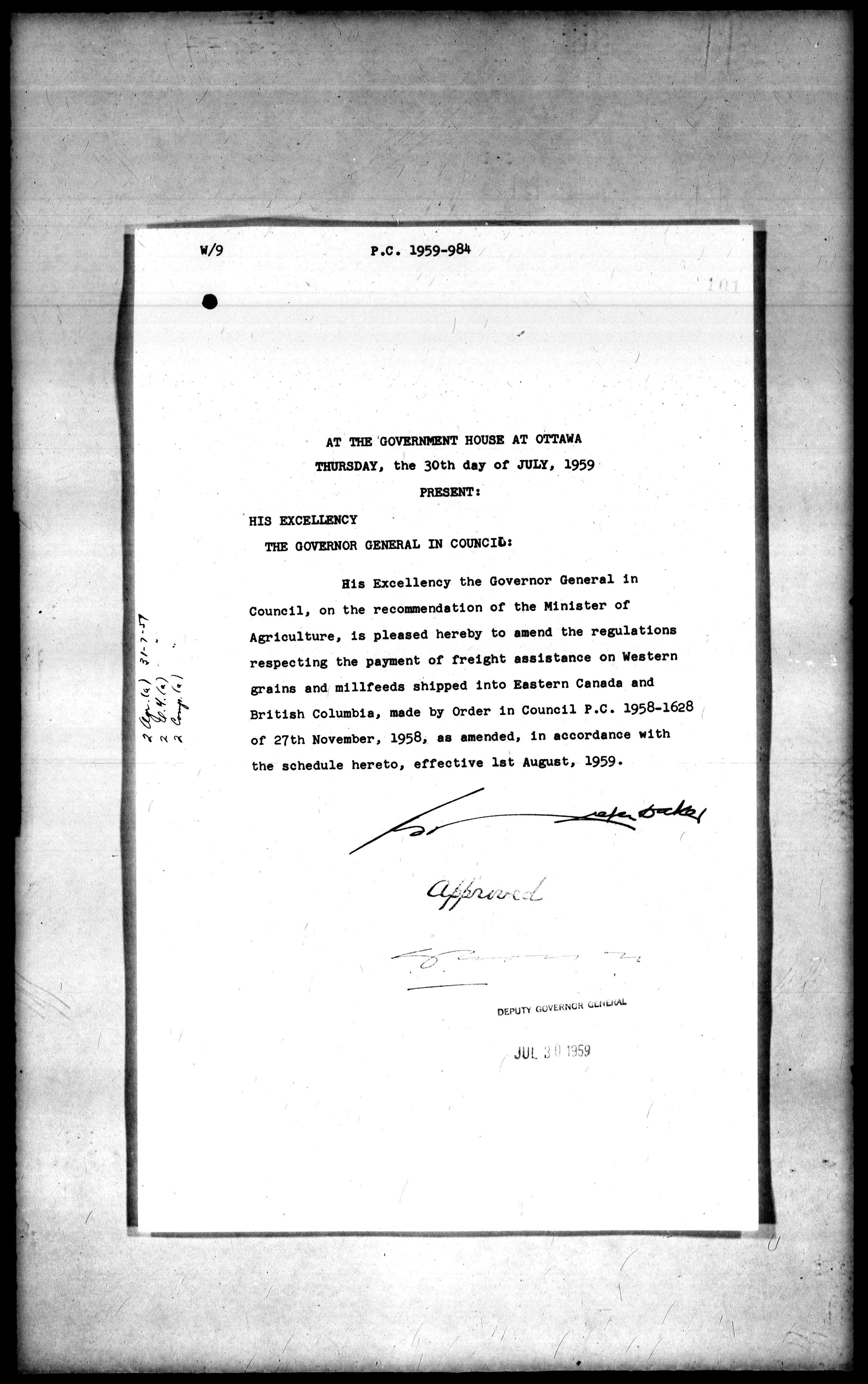 Privy Council Office, Orders in Council : Minutes, annexes and reports - 5322