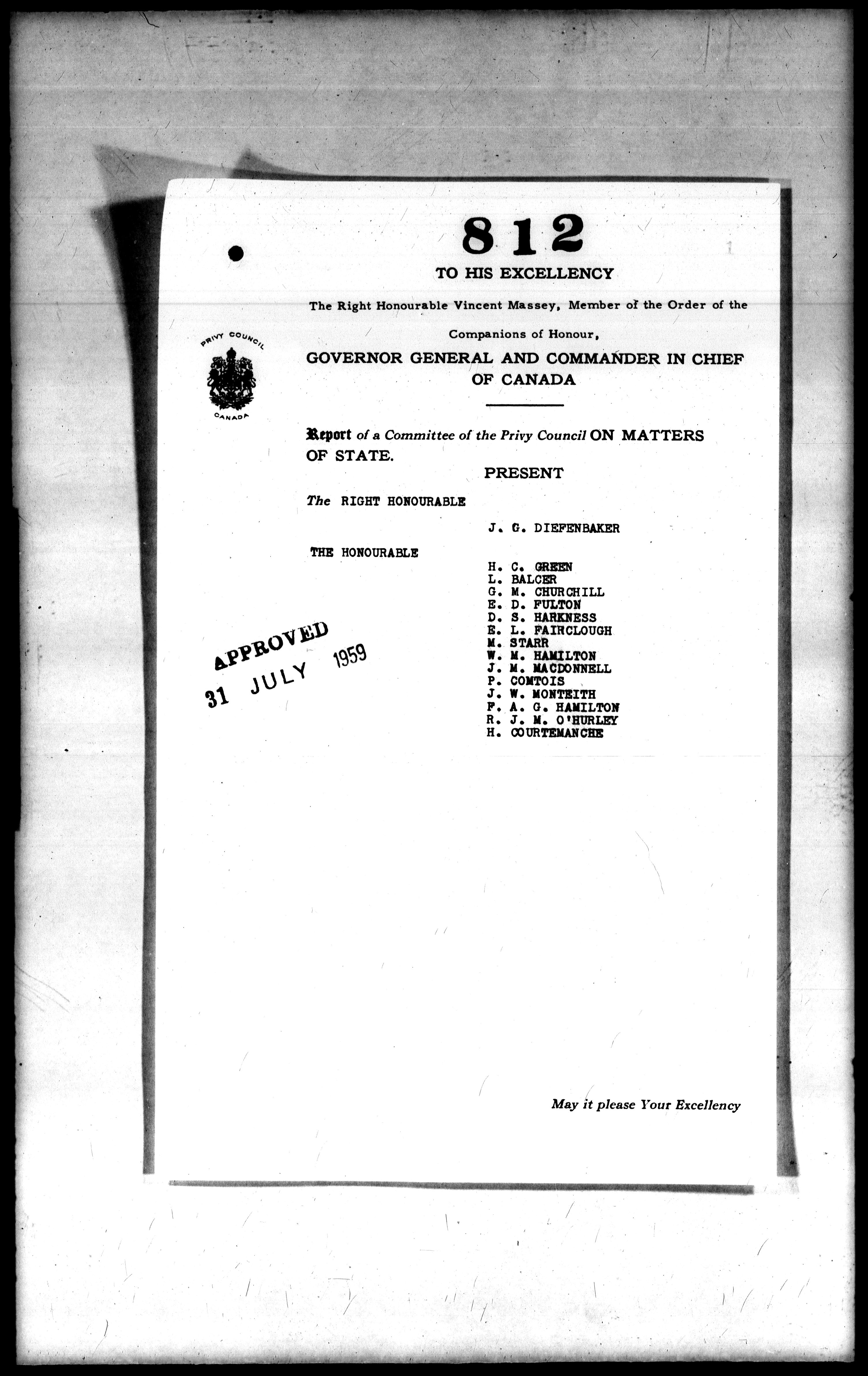 Privy Council Office, Orders in Council : Minutes, annexes and reports - 5322