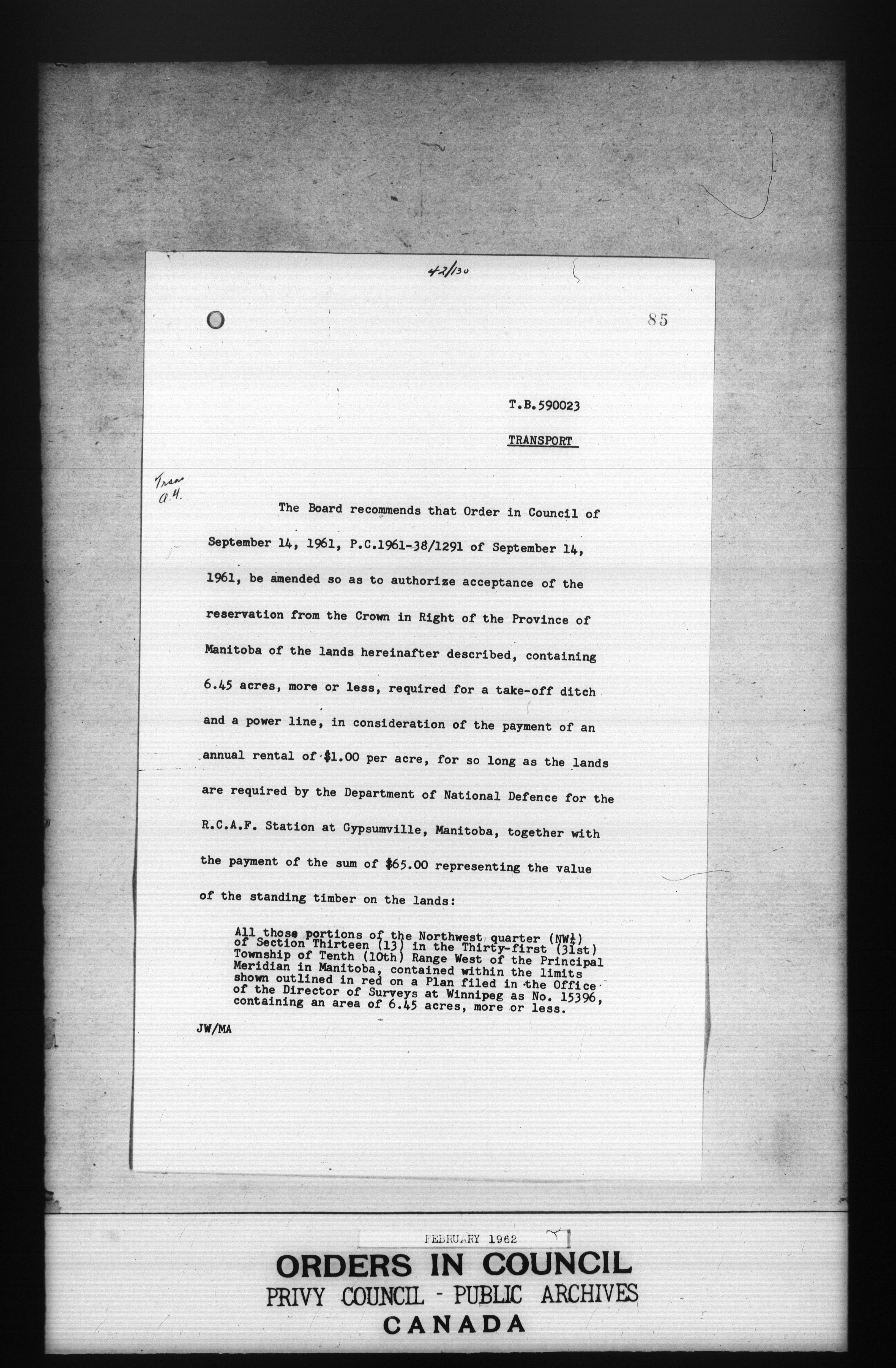 Privy Council Office, Orders in Council : Minutes, annexes and reports : T-5353