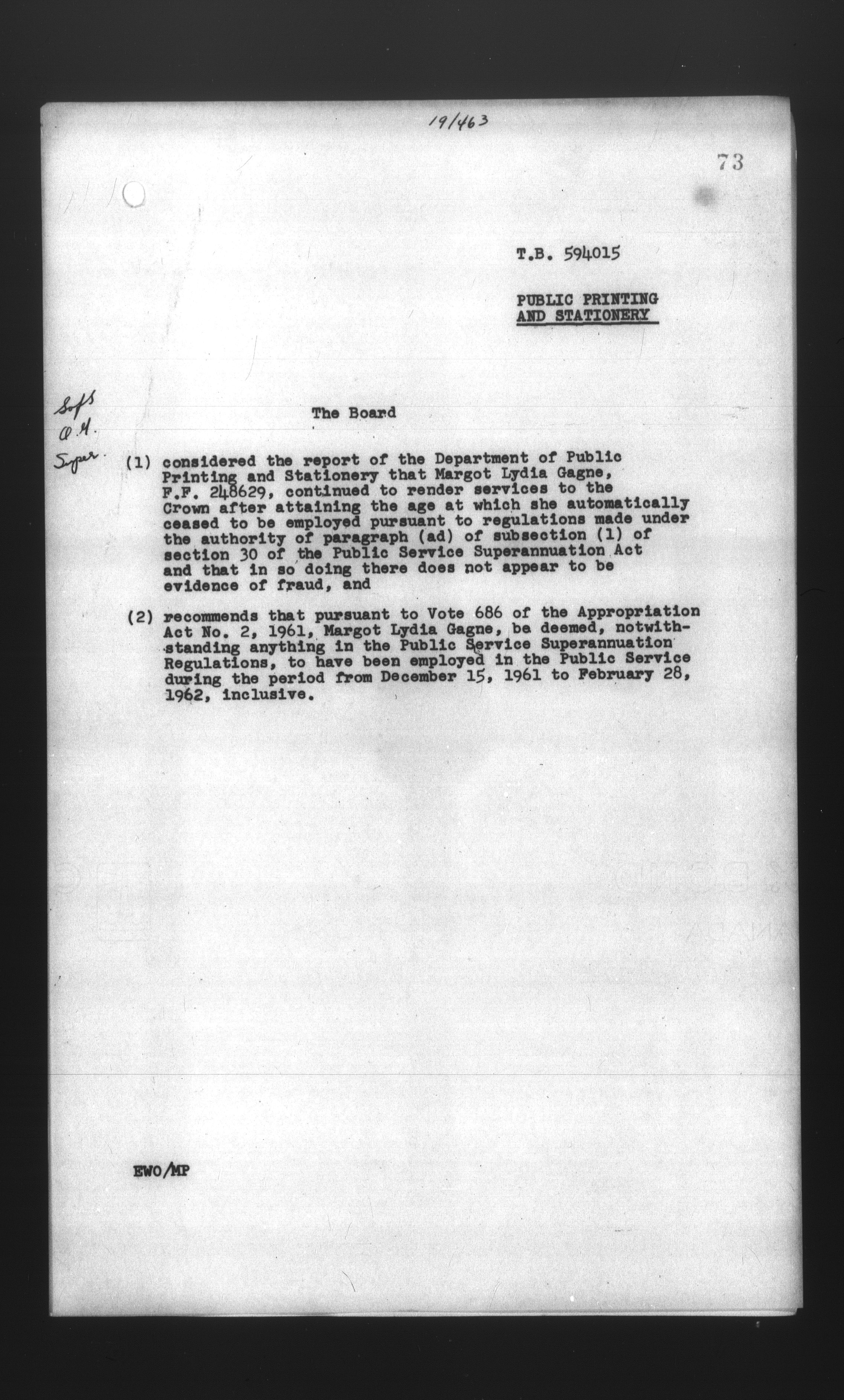 Privy Council Office, Orders in Council : Minutes, annexes and reports : T-5355