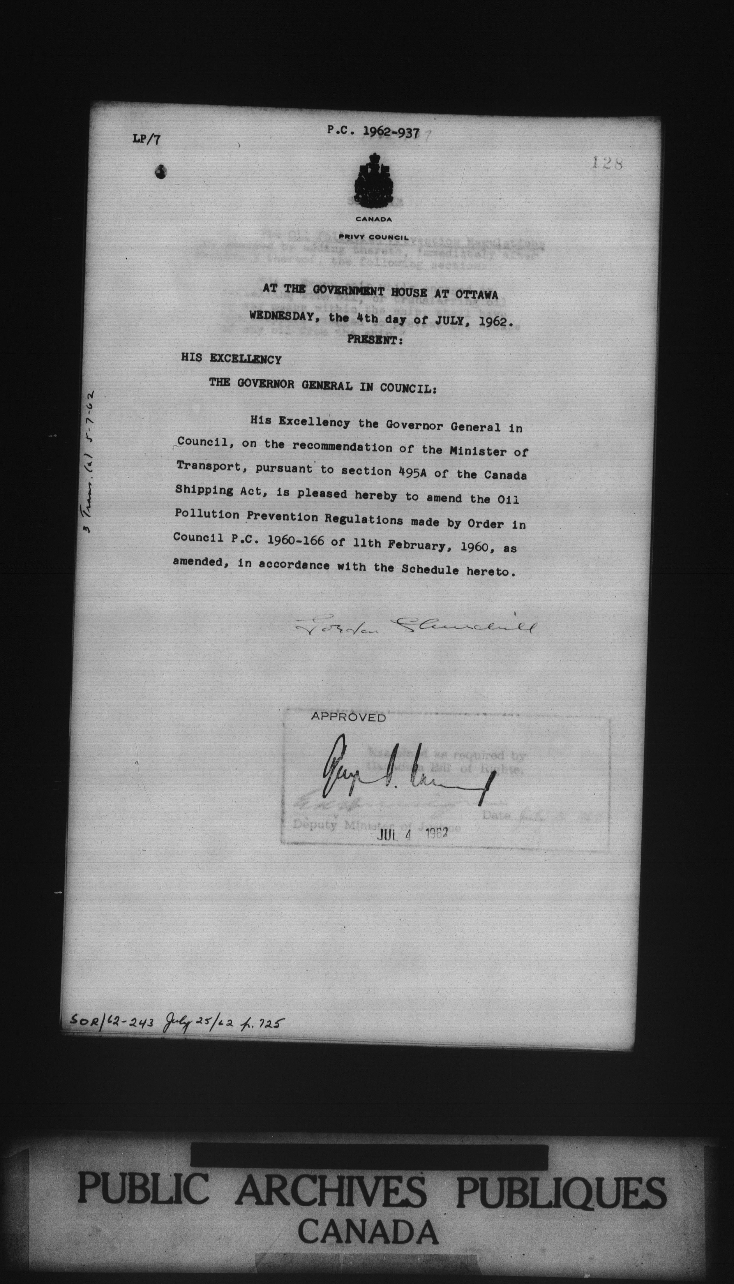 Privy Council Office, Orders in Council : Minutes, annexes and reports - 5358