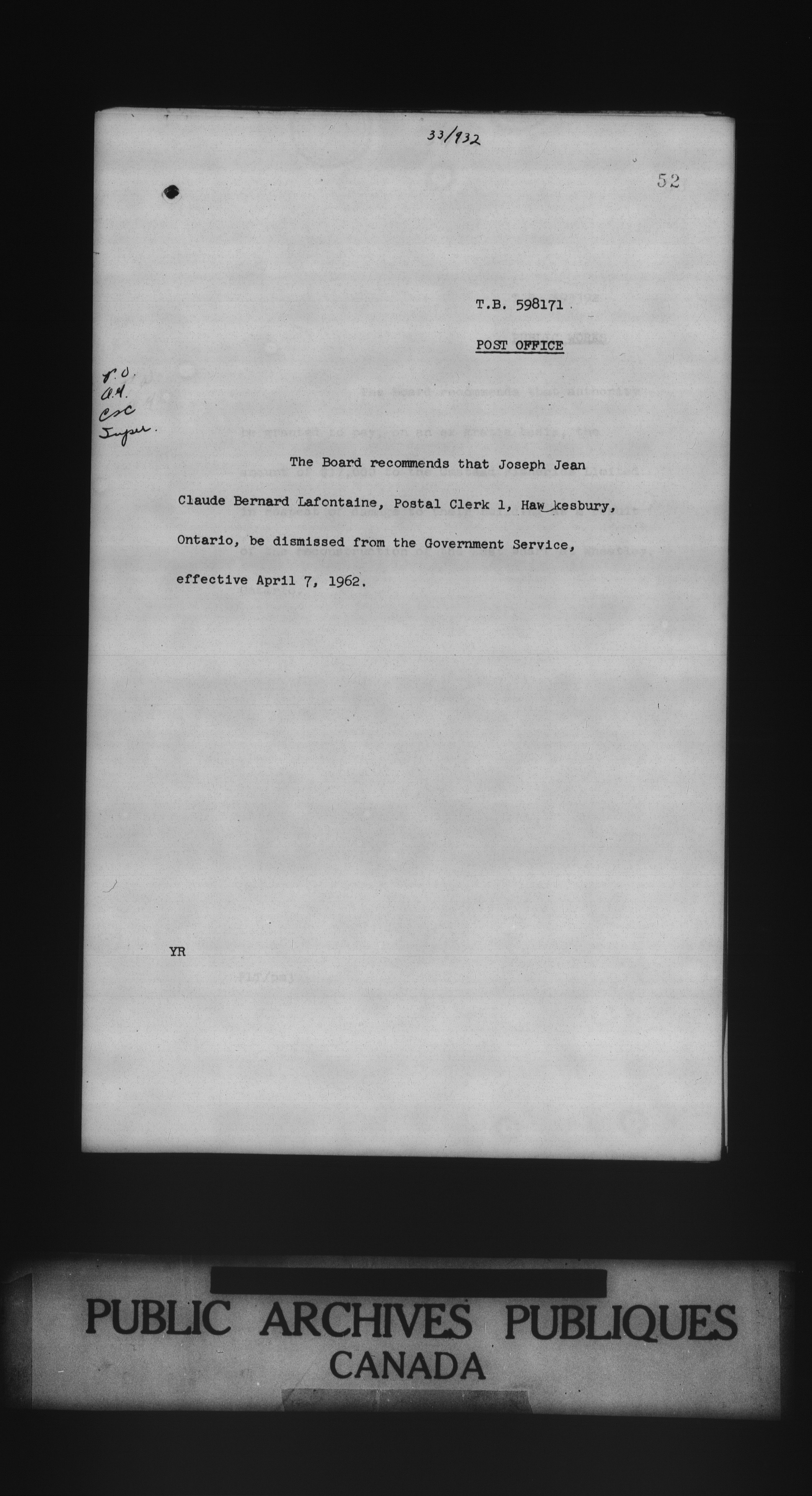 Privy Council Office, Orders in Council : Minutes, annexes and reports - 5358