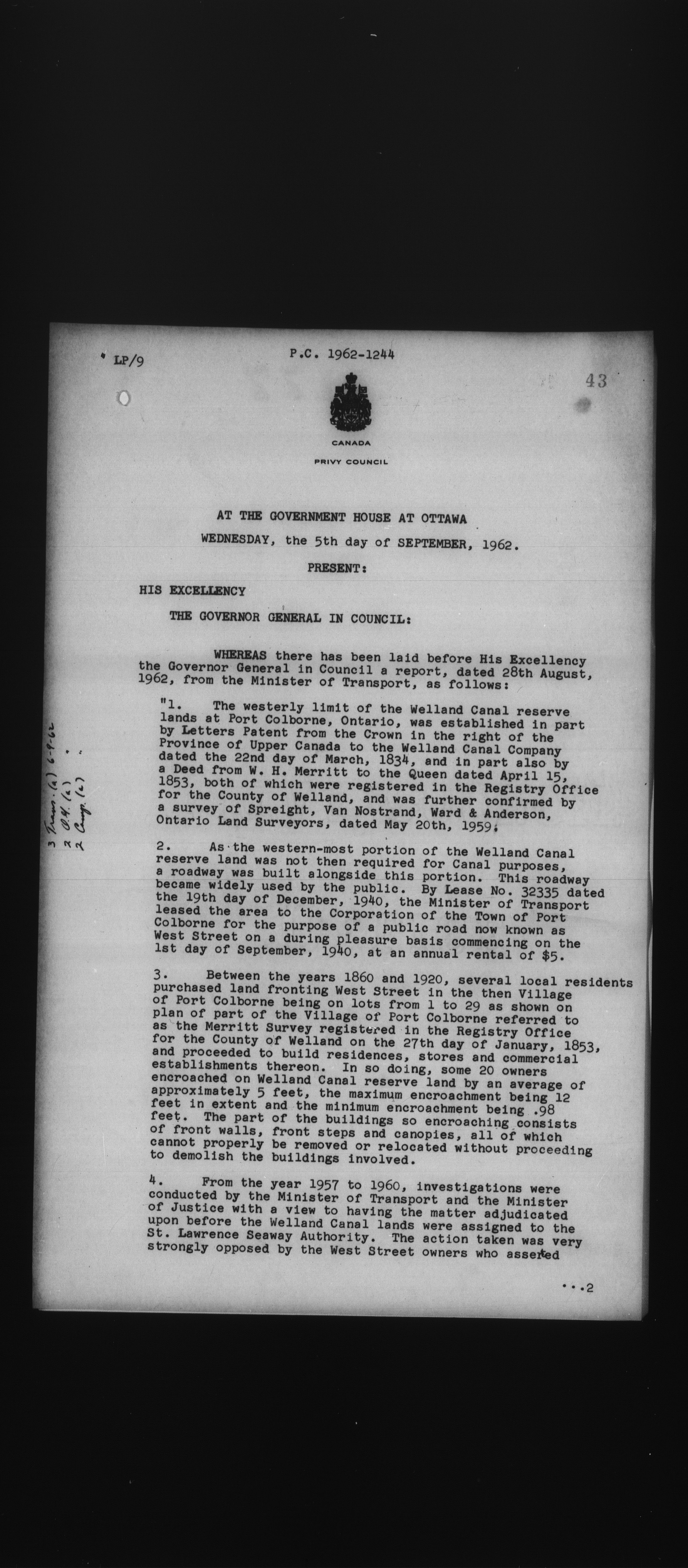 Privy Council Office, Orders in Council : Minutes, annexes and reports - 5360
