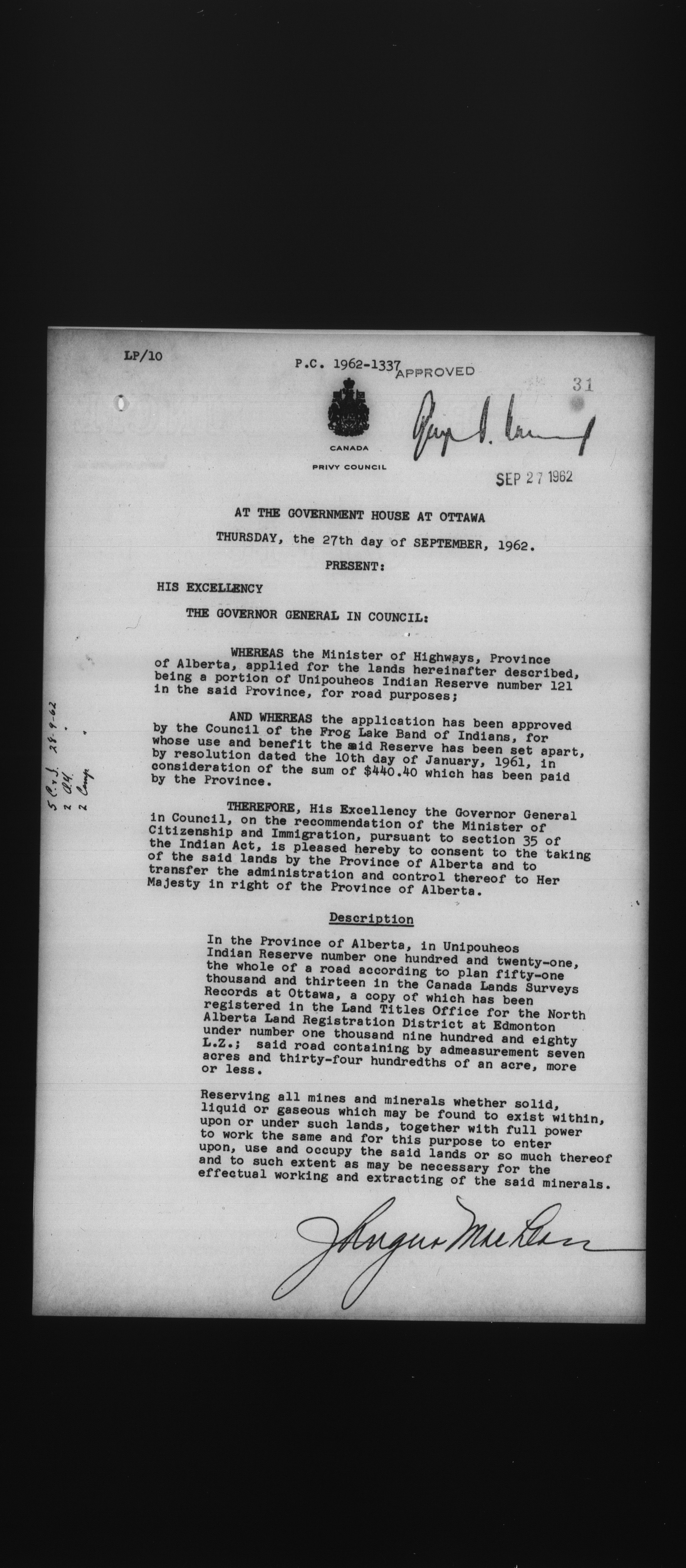 Privy Council Office, Orders in Council : Minutes, annexes and reports - 5360