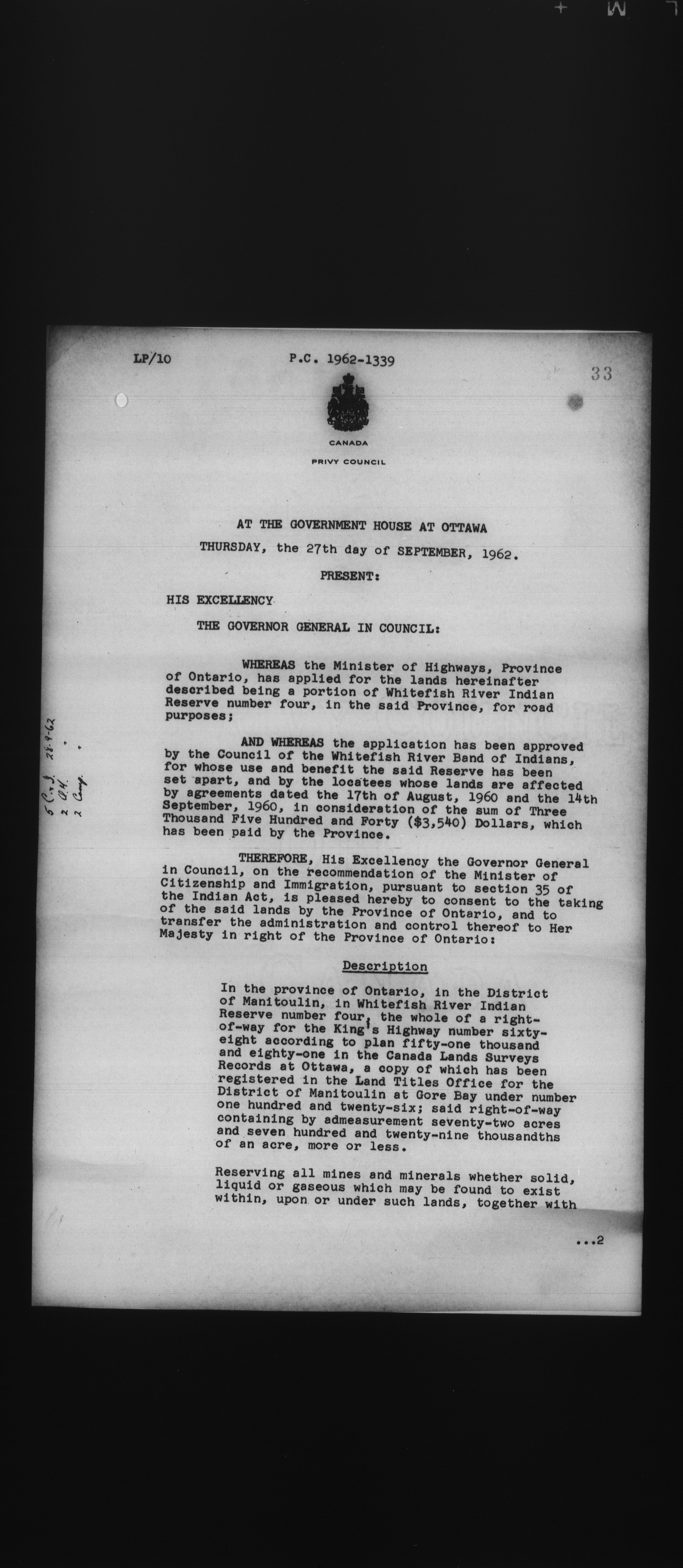 Privy Council Office, Orders in Council : Minutes, annexes and reports - 5360