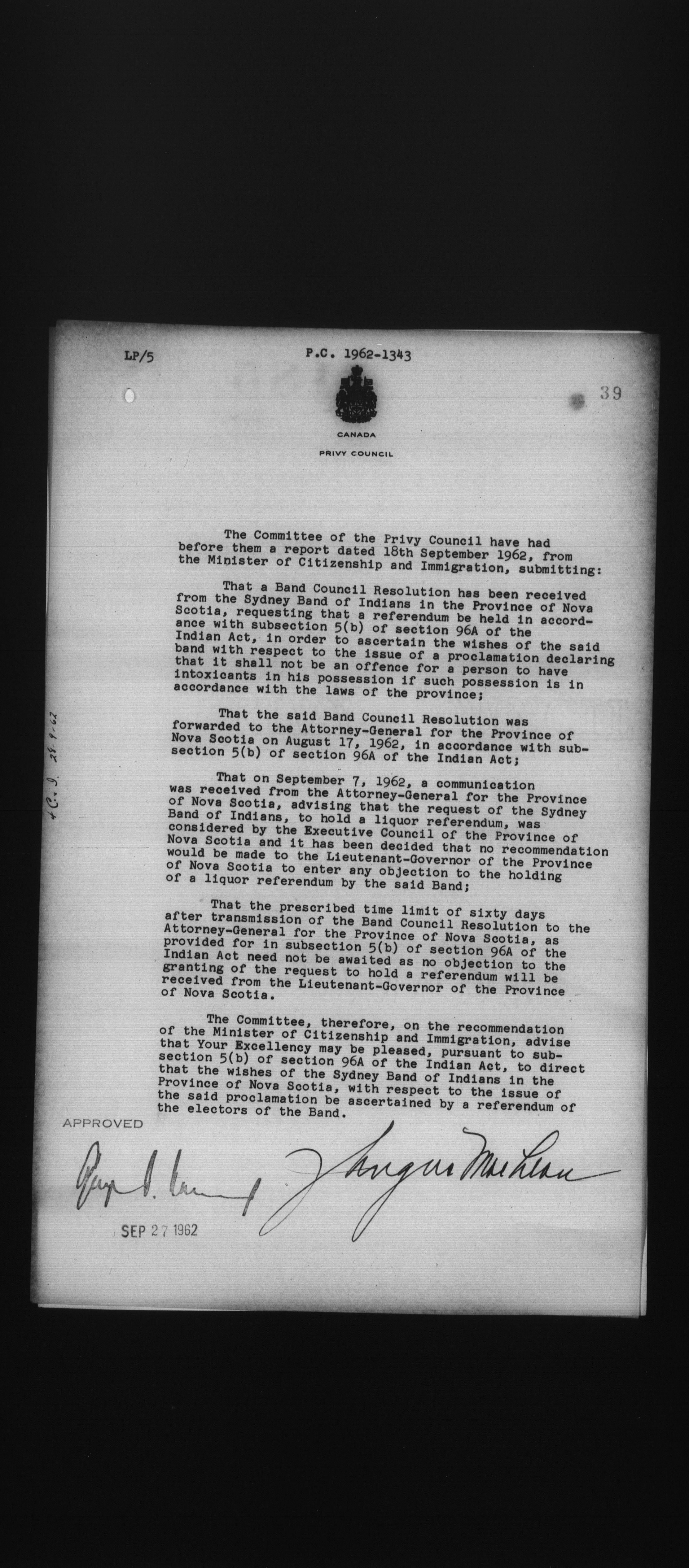 Privy Council Office, Orders in Council : Minutes, annexes and reports - 5360