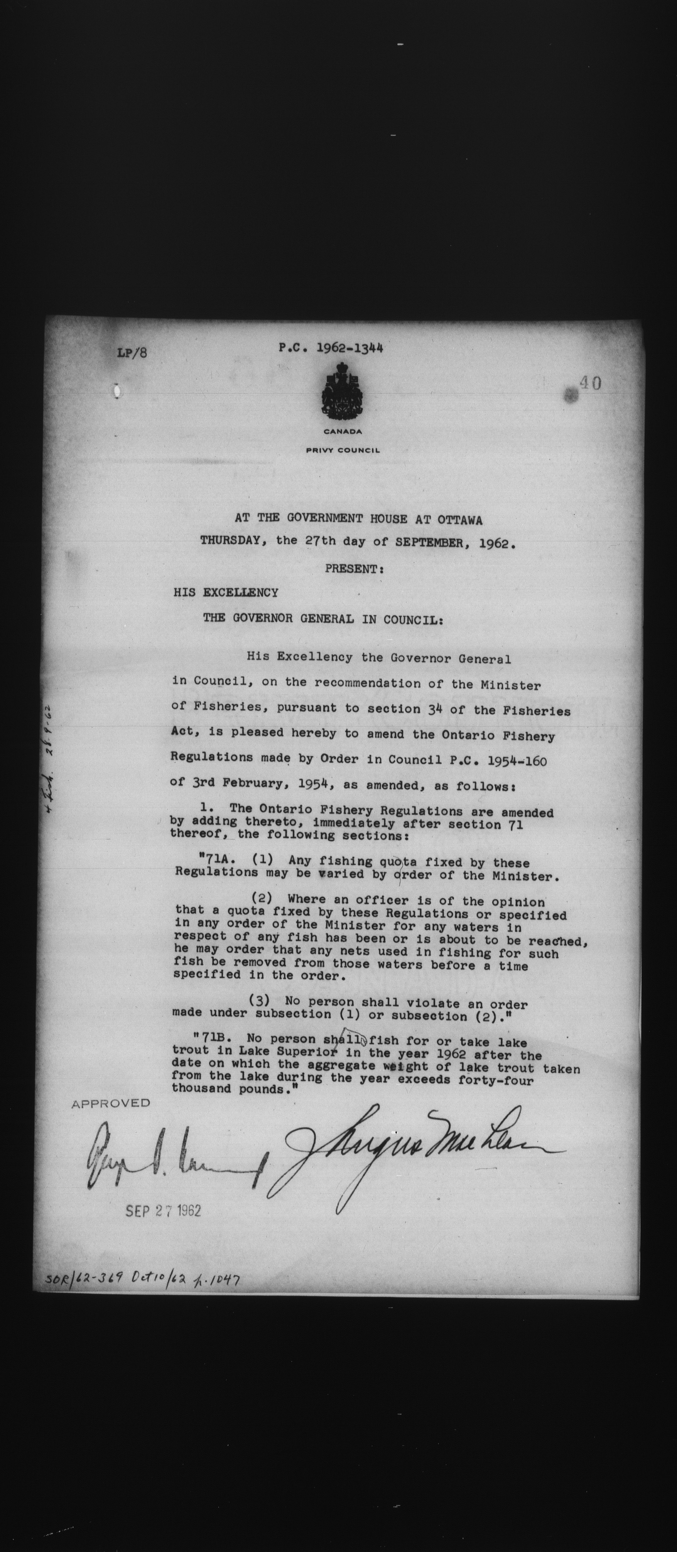Privy Council Office, Orders in Council : Minutes, annexes and reports - 5360