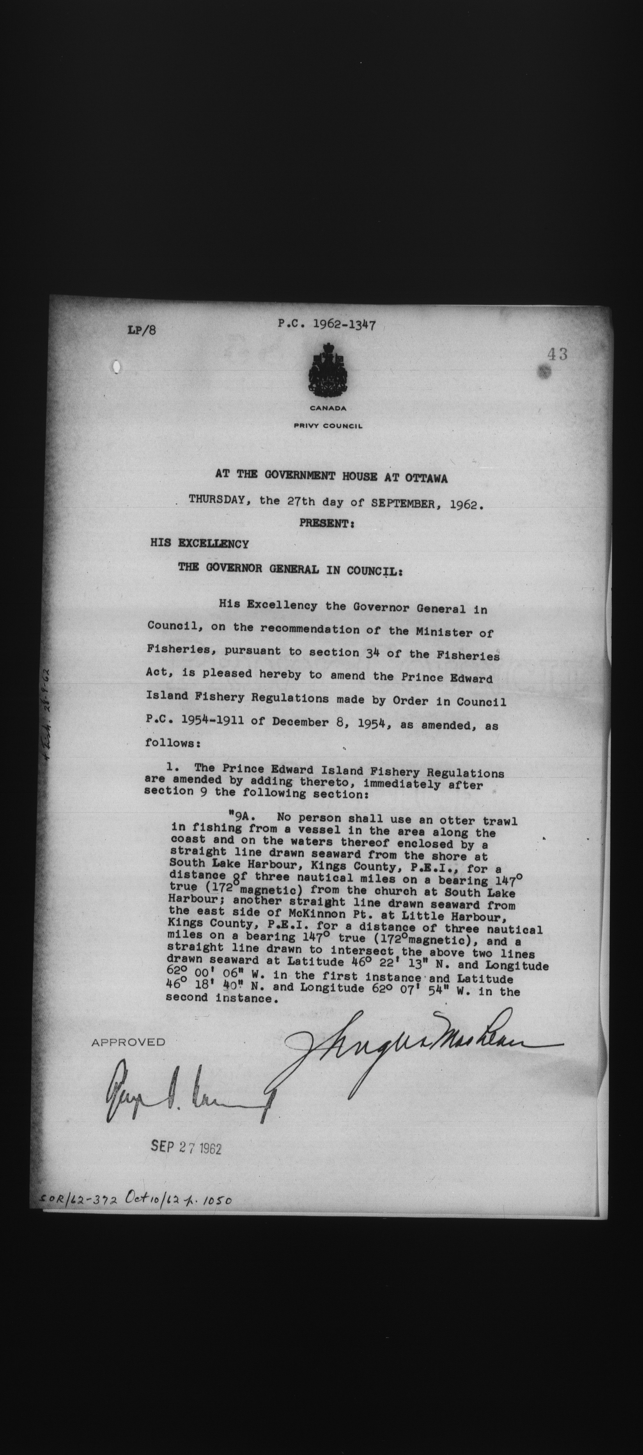Privy Council Office, Orders in Council : Minutes, annexes and reports - 5360