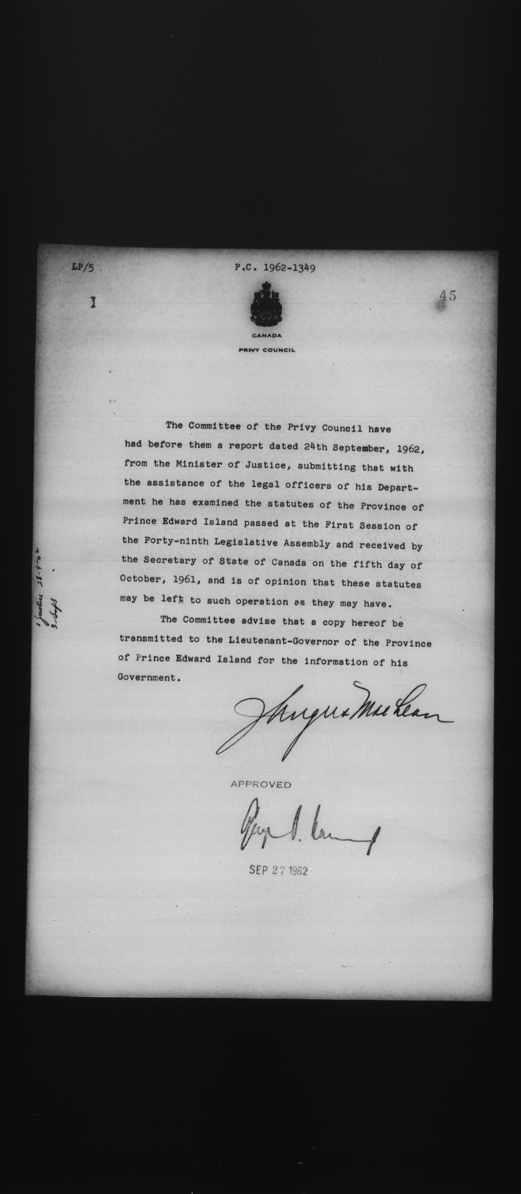 Privy Council Office, Orders in Council : Minutes, annexes and reports - 5360