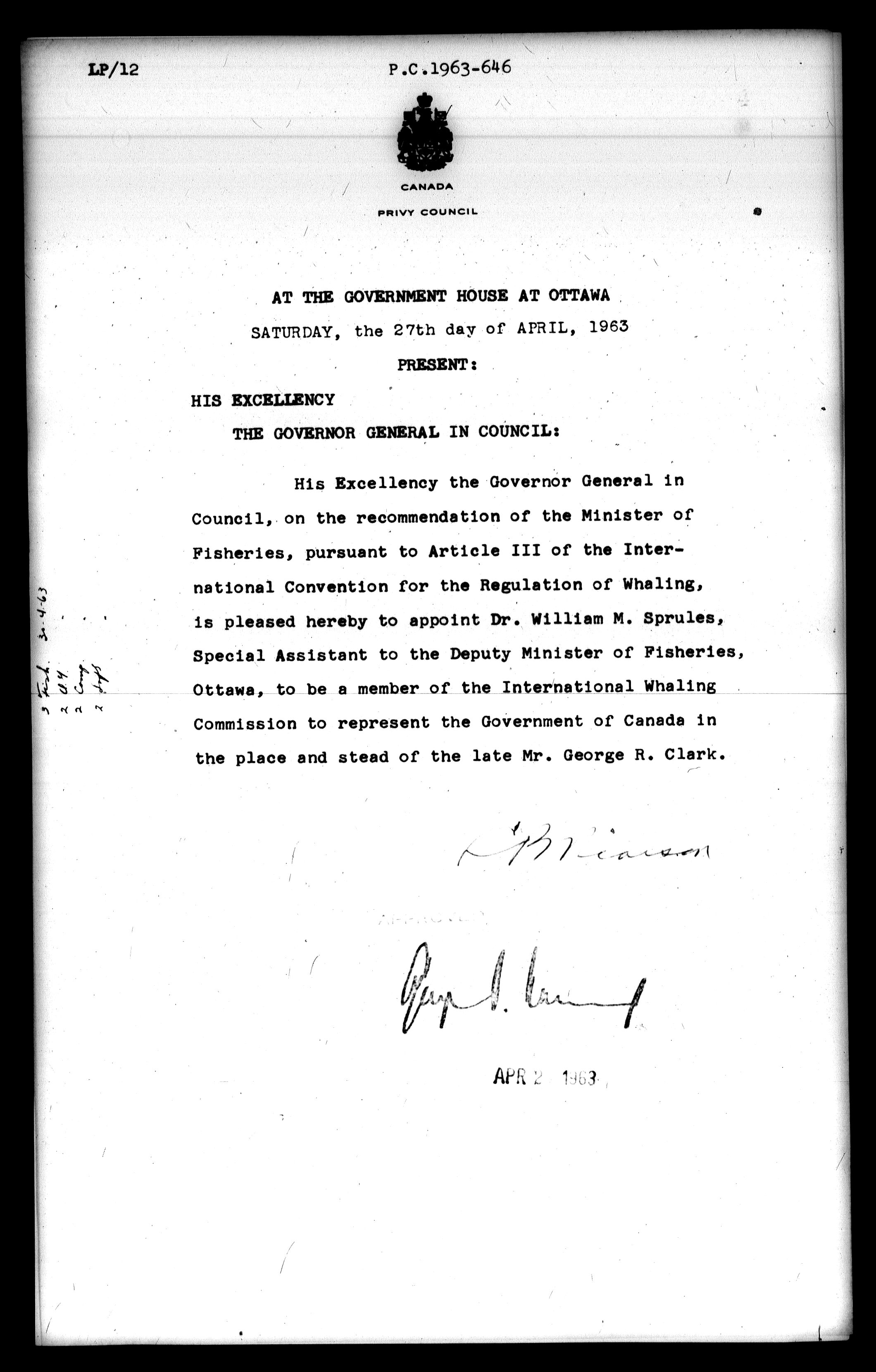 Privy Council Office, Orders in Council : Minutes, annexes and reports - 5367