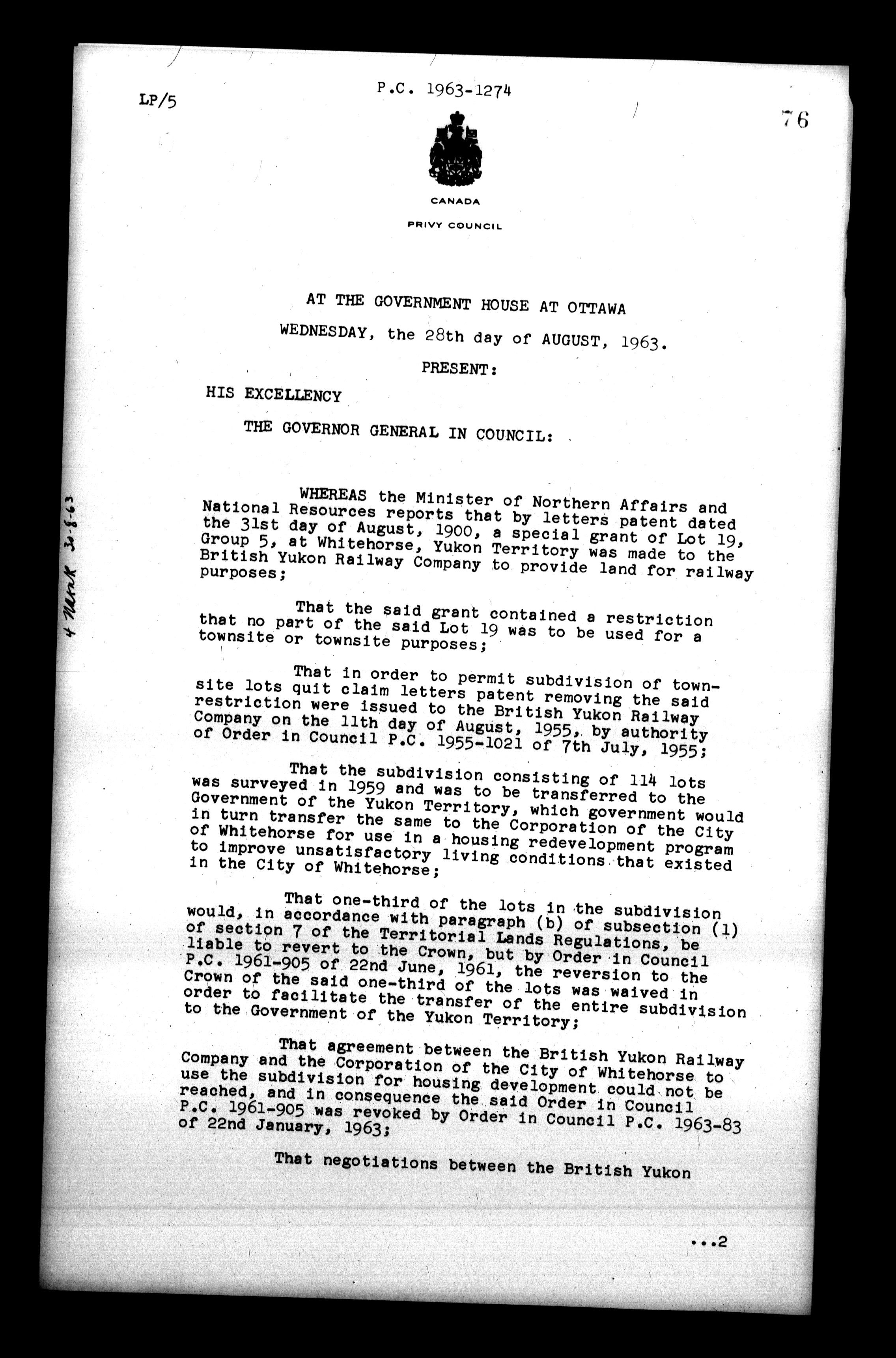 Privy Council Office, Orders in Council : Minutes, annexes and reports - 5371