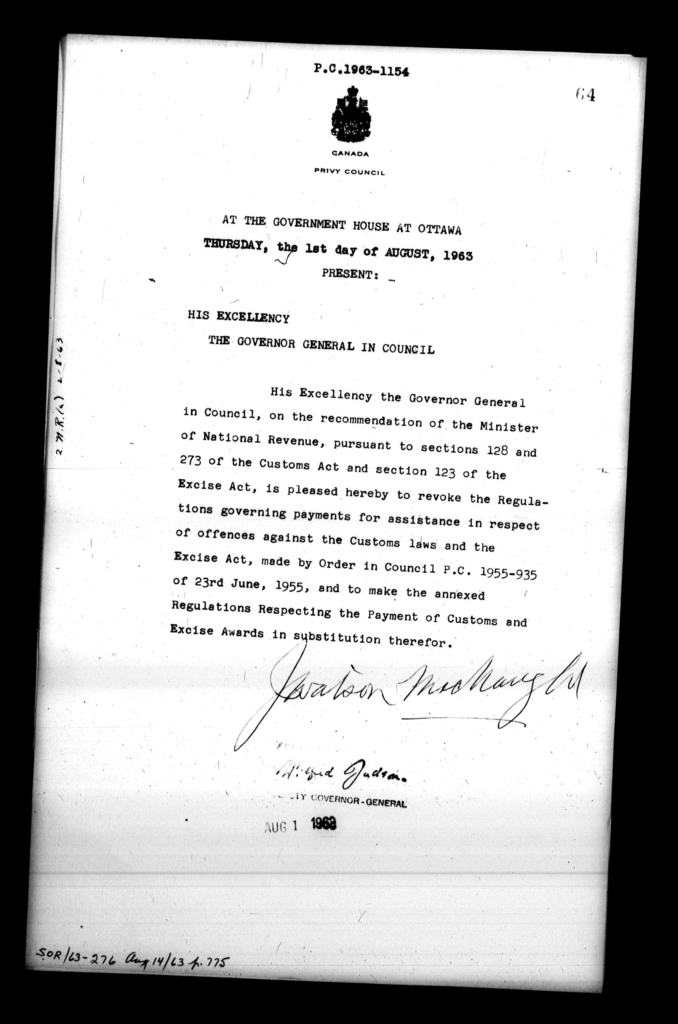 Privy Council Office, Orders in Council : Minutes, annexes and reports - 5371