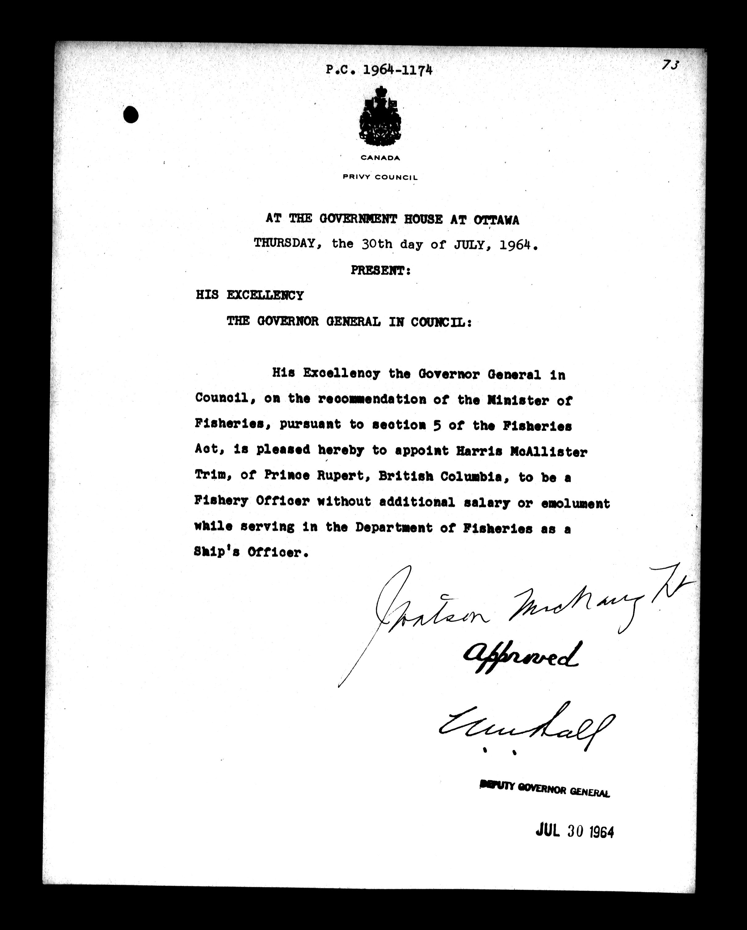 Privy Council Office, Orders in Council : Minutes, annexes and reports - 5382