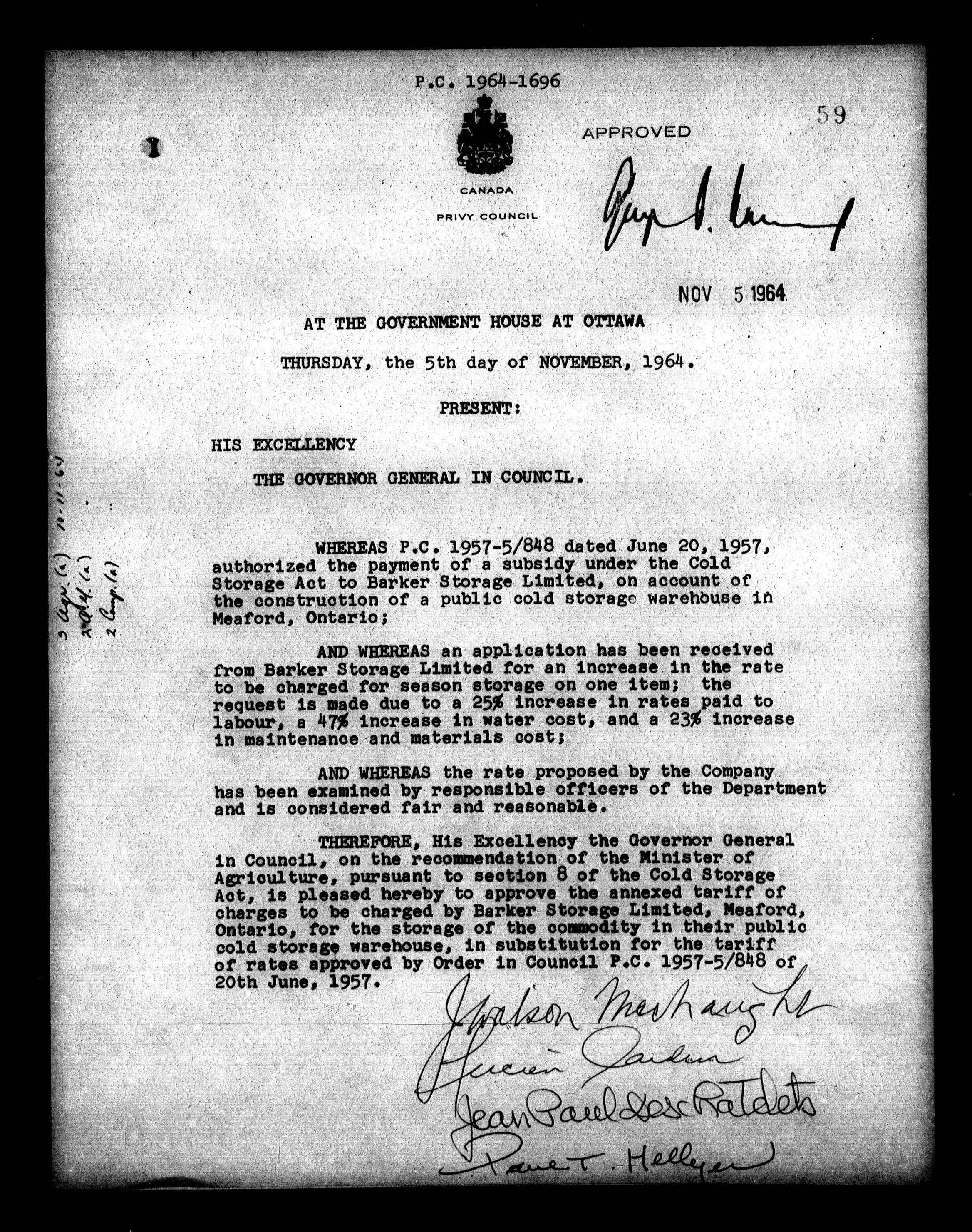 Privy Council Office, Orders in Council : Minutes, annexes and reports - 5386