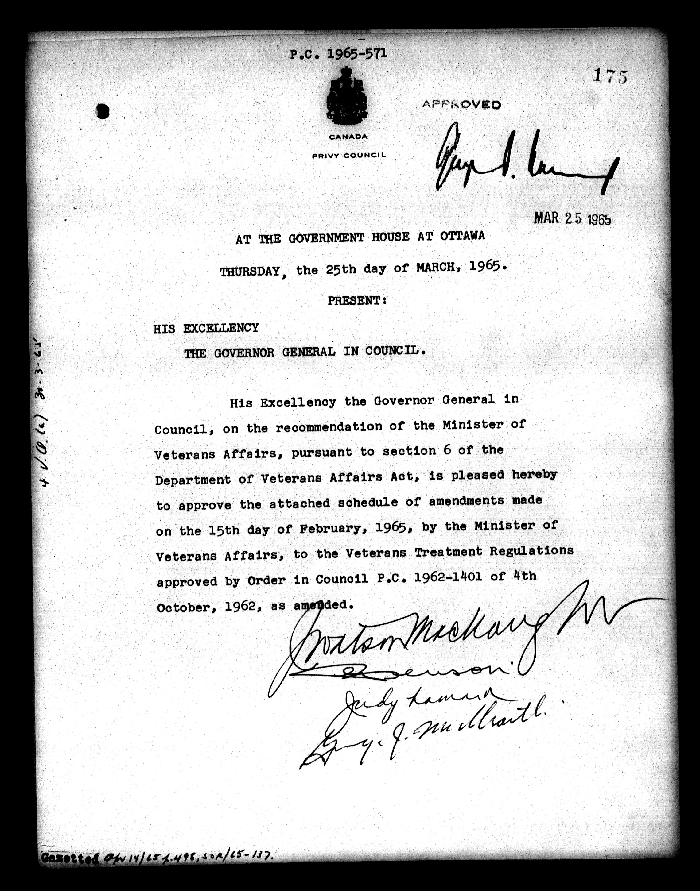 Privy Council Office, Orders in Council : Minutes, annexes and reports - 5390
