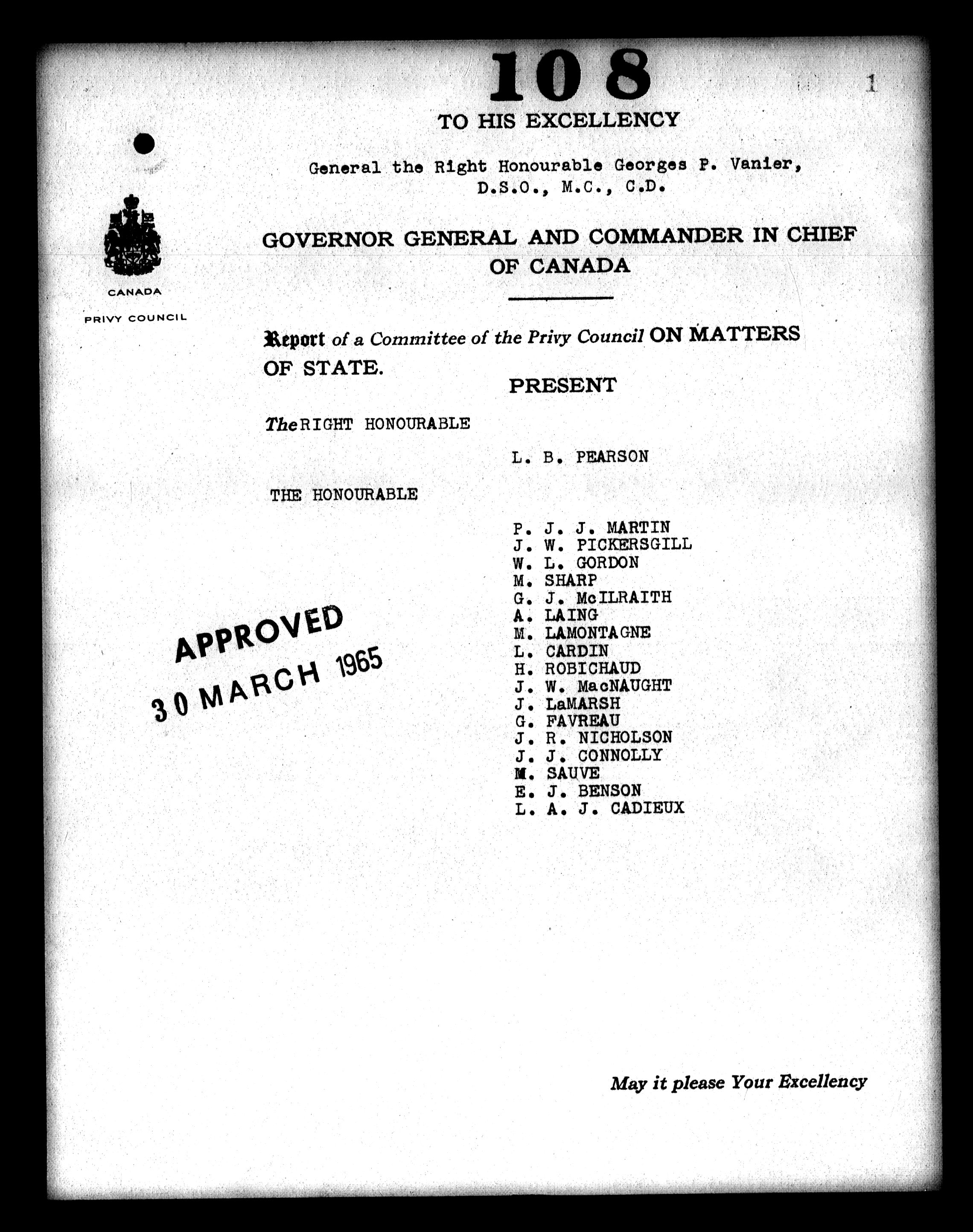 Privy Council Office, Orders in Council : Minutes, annexes and reports - 5390