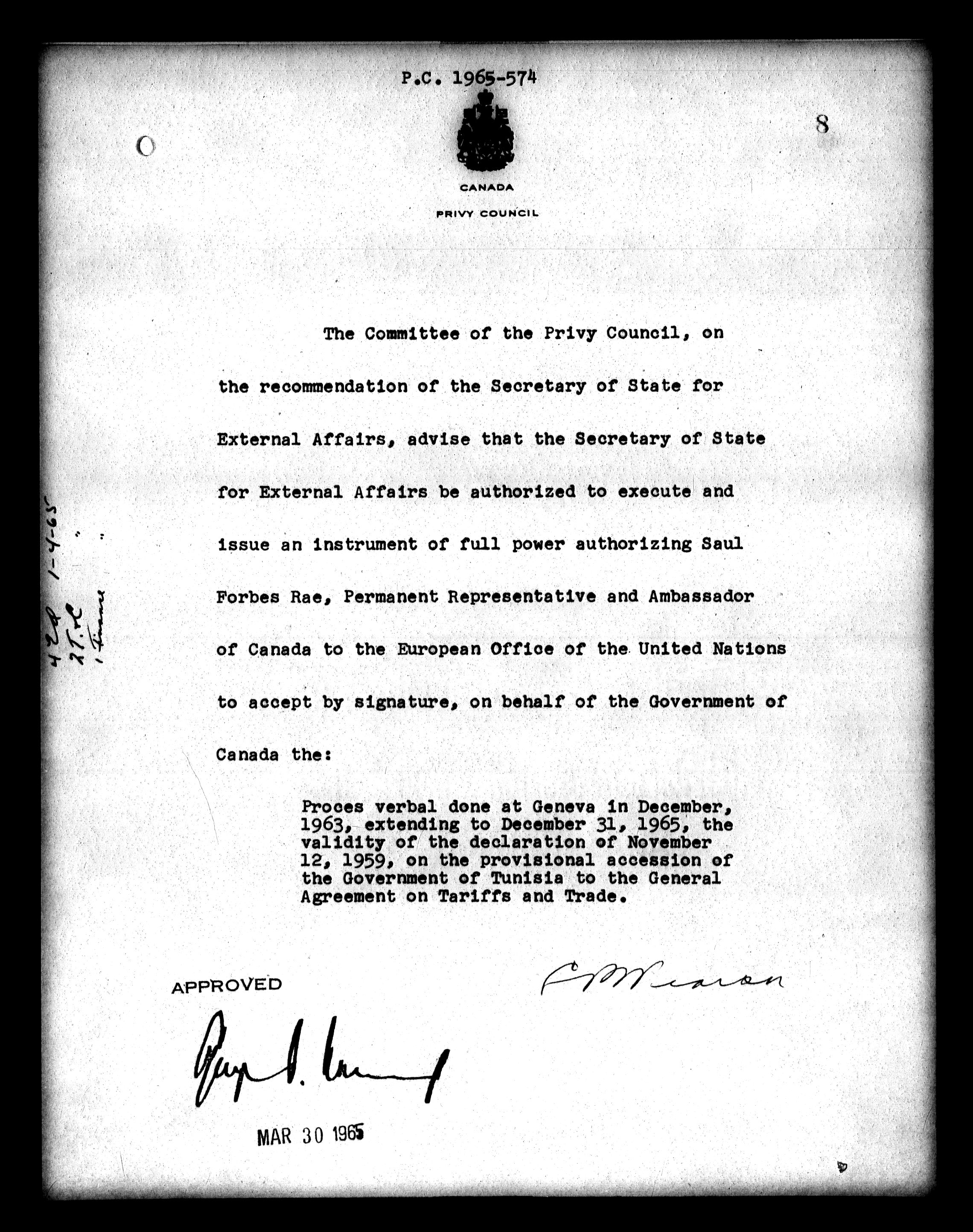 Privy Council Office, Orders in Council : Minutes, annexes and reports - 5390