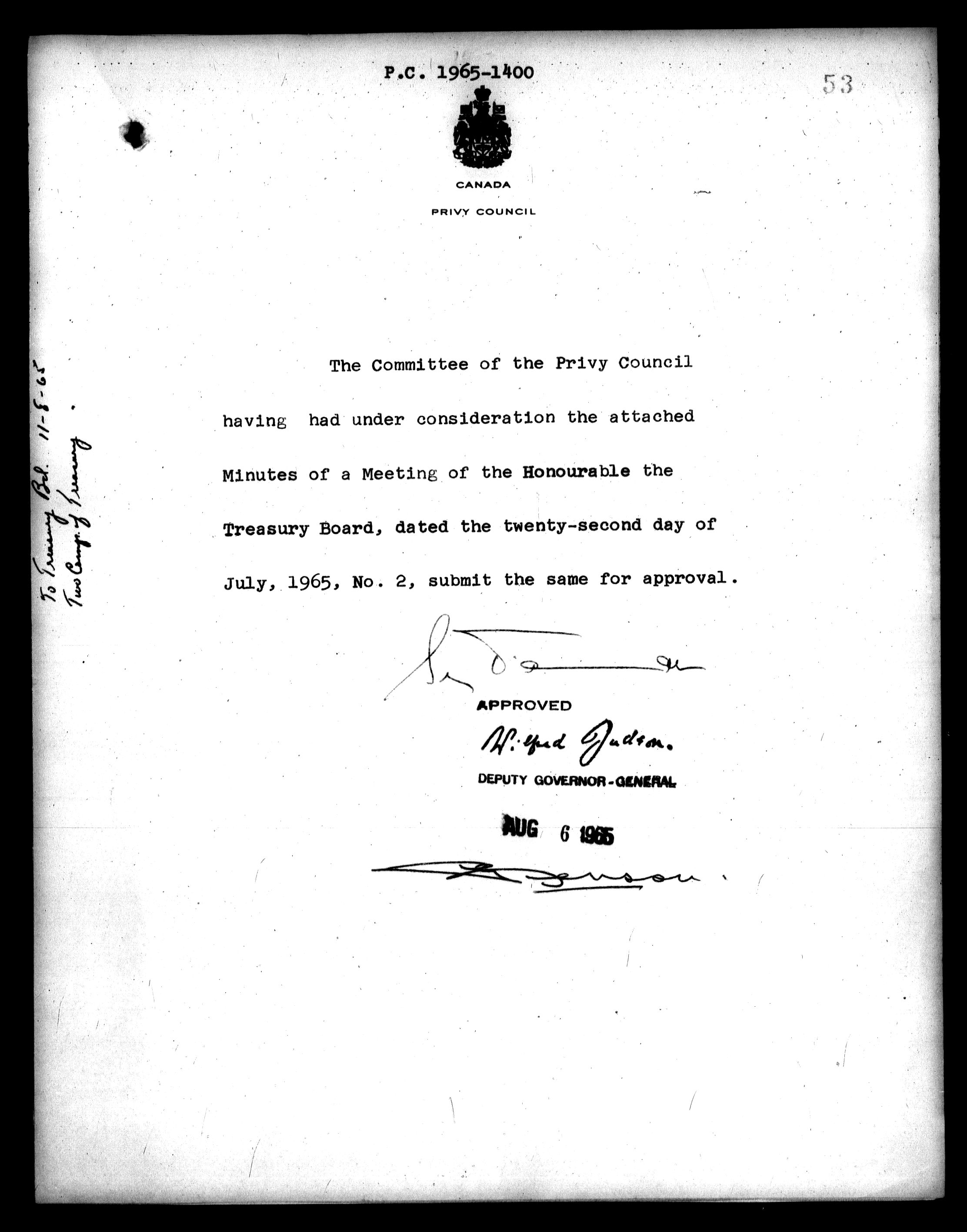 Privy Council Office, Orders in Council : Minutes, annexes and reports - 5395