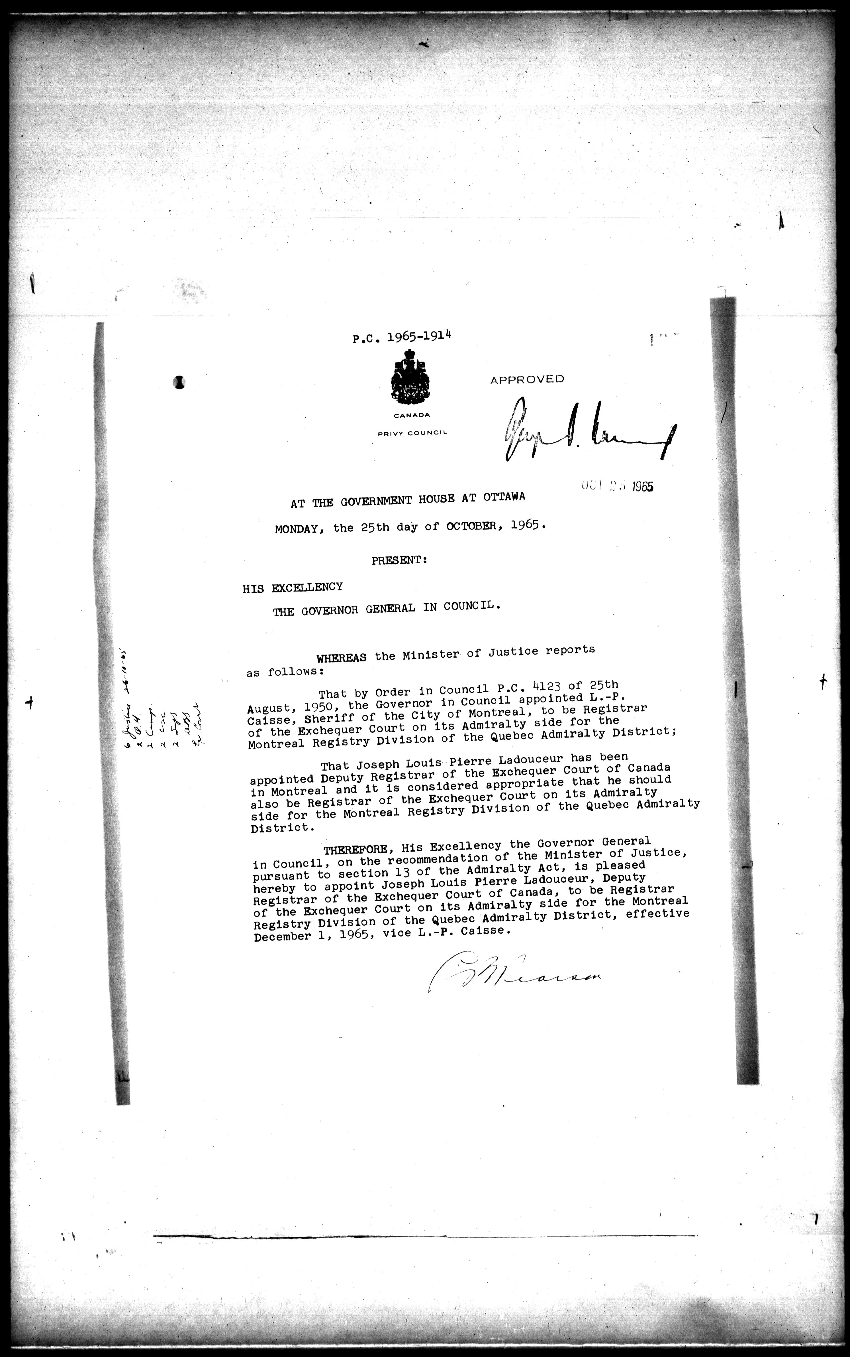Privy Council Office, Orders in Council : Minutes, annexes and reports - 5397
