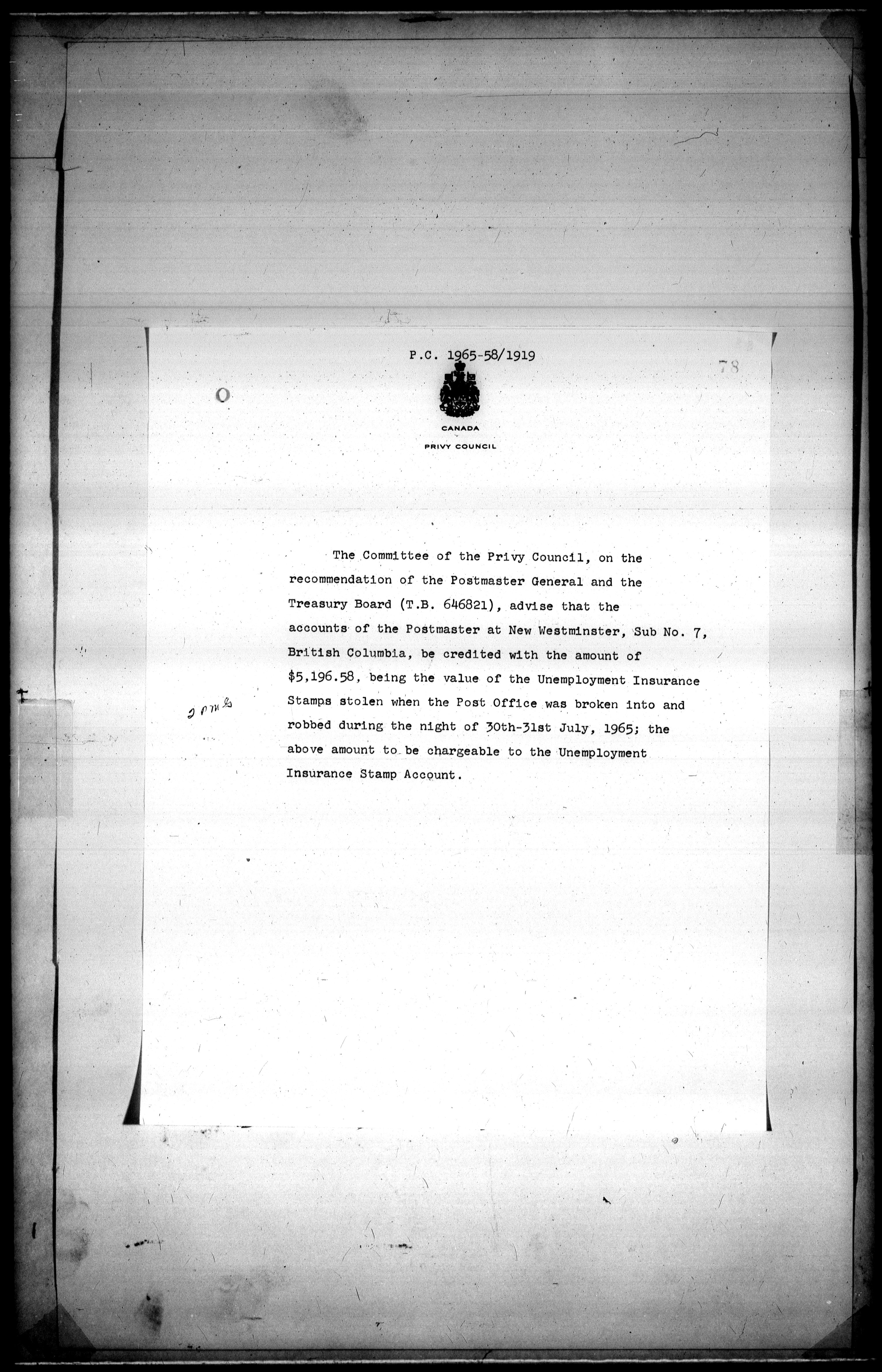 Privy Council Office, Orders in Council : Minutes, annexes and reports - 5398