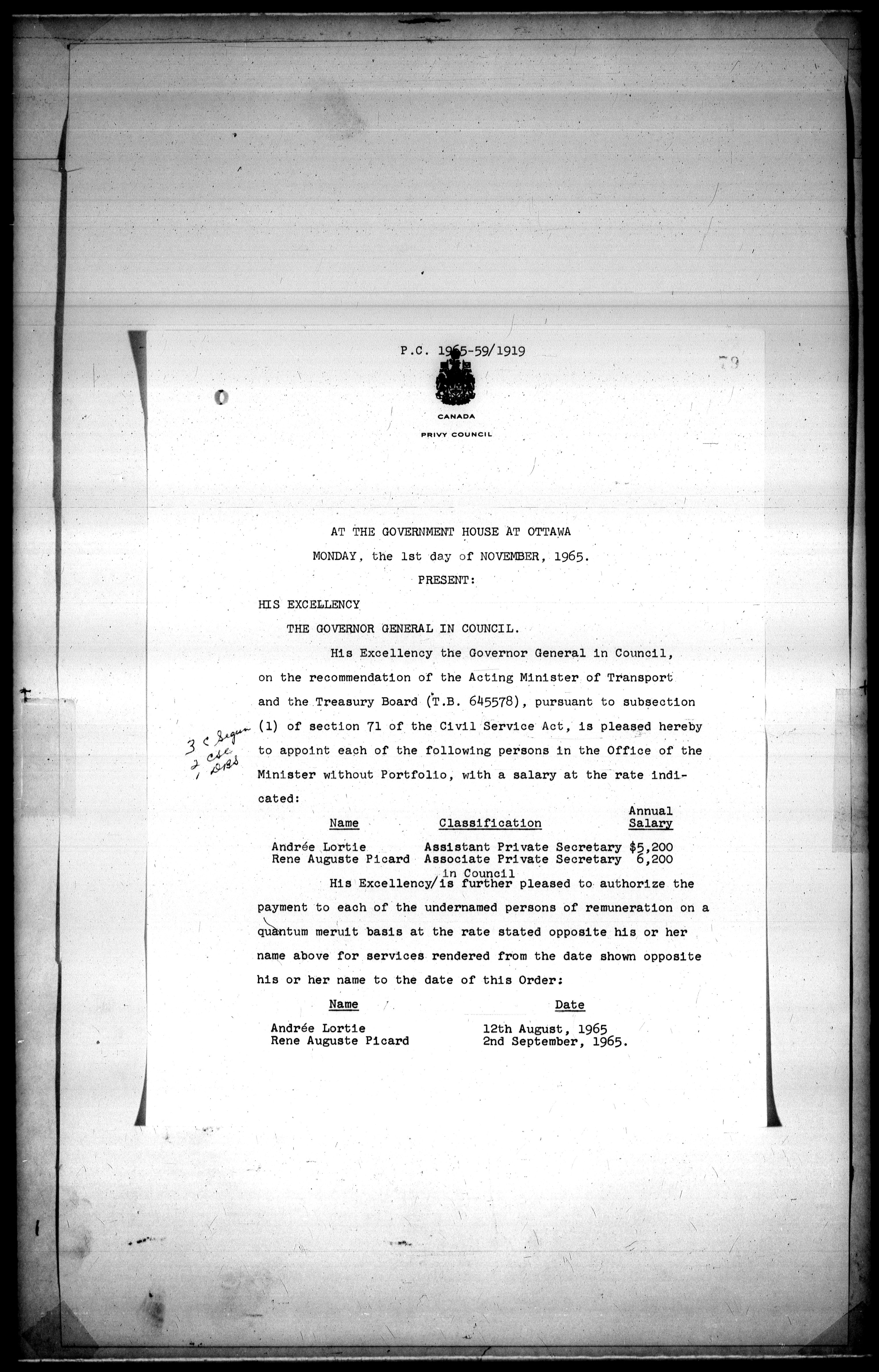 Privy Council Office, Orders in Council : Minutes, annexes and reports - 5398