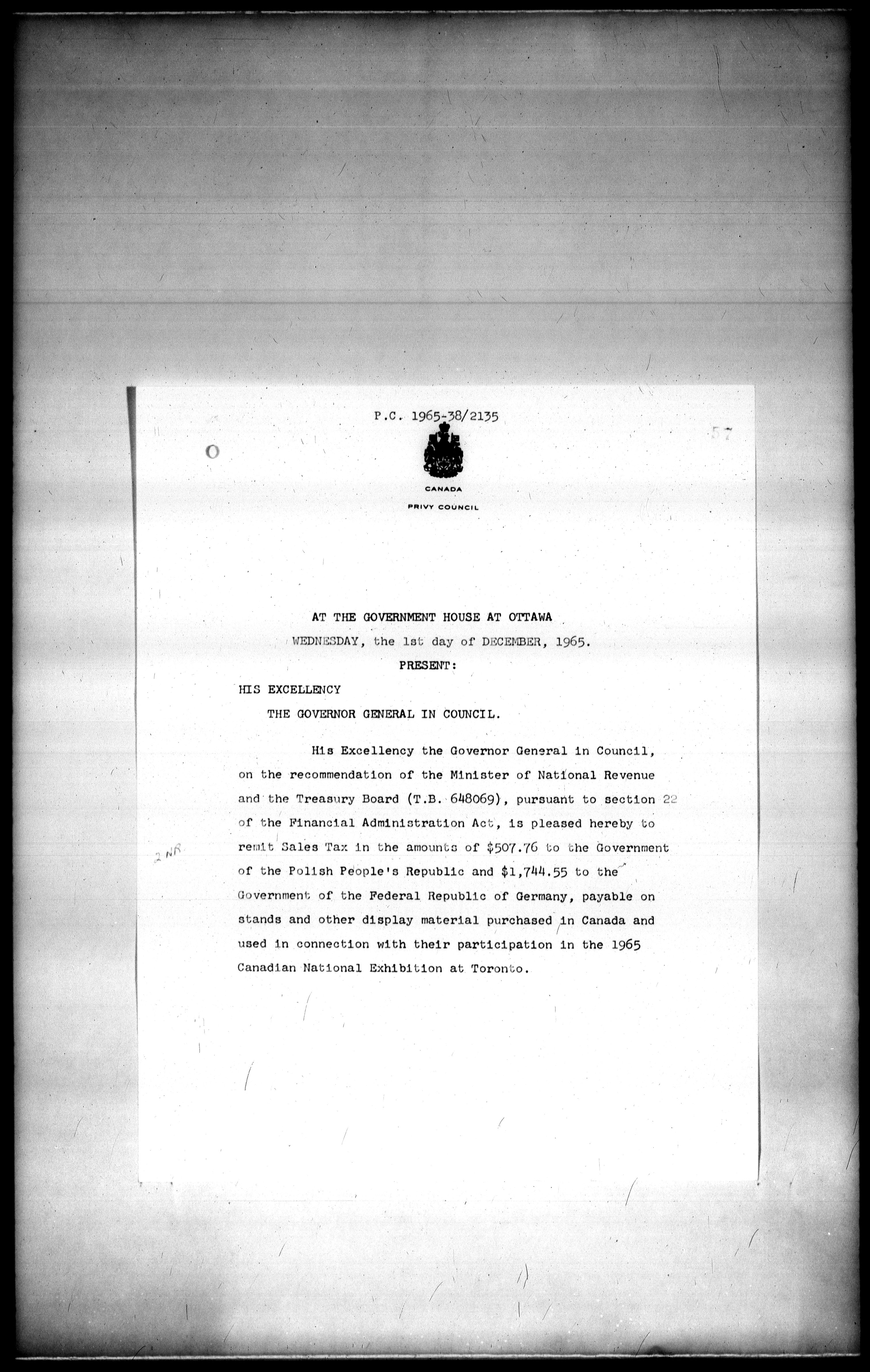 Privy Council Office, Orders in Council : Minutes, annexes and reports - 5399