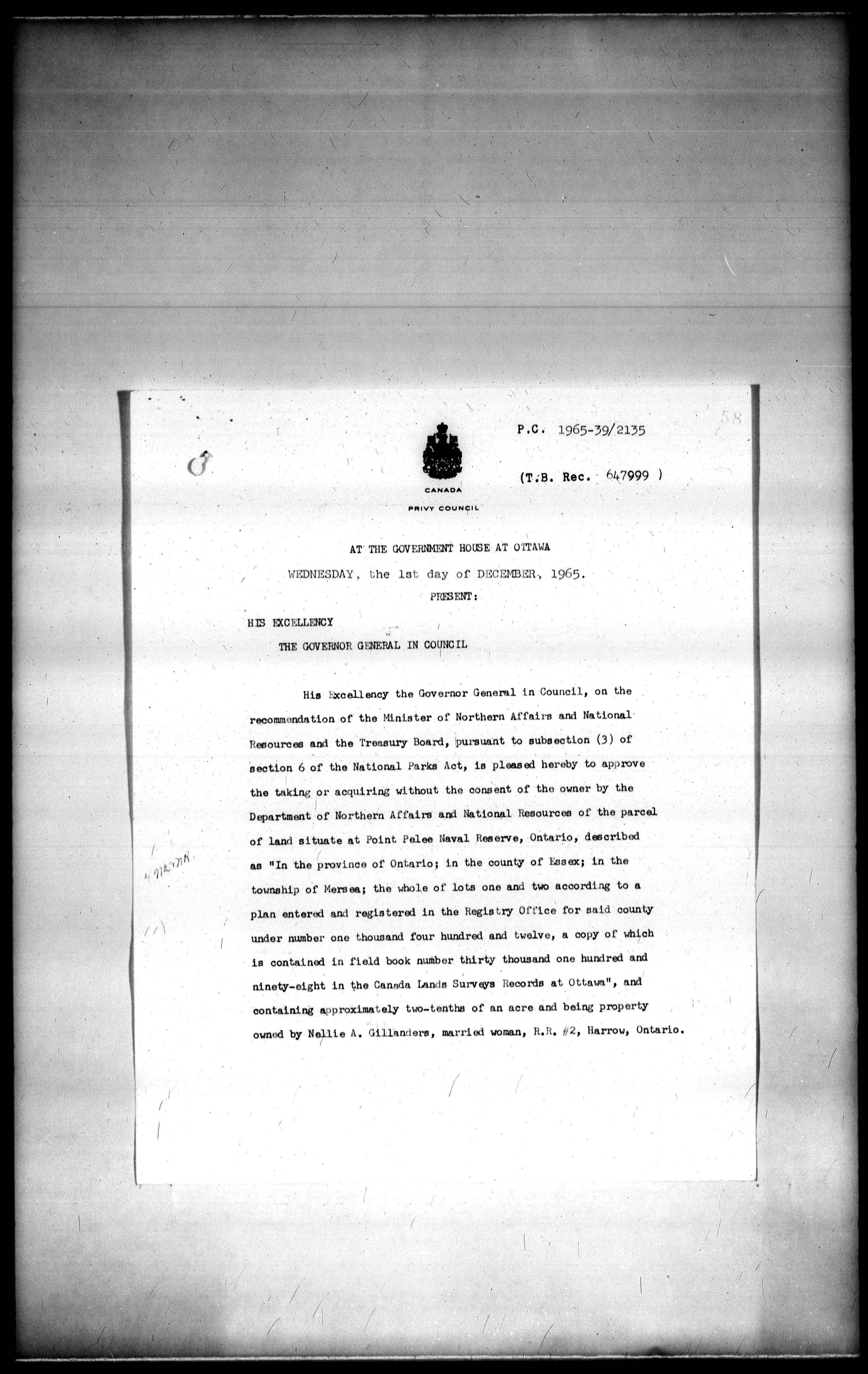 Privy Council Office, Orders in Council : Minutes, annexes and reports - 5399