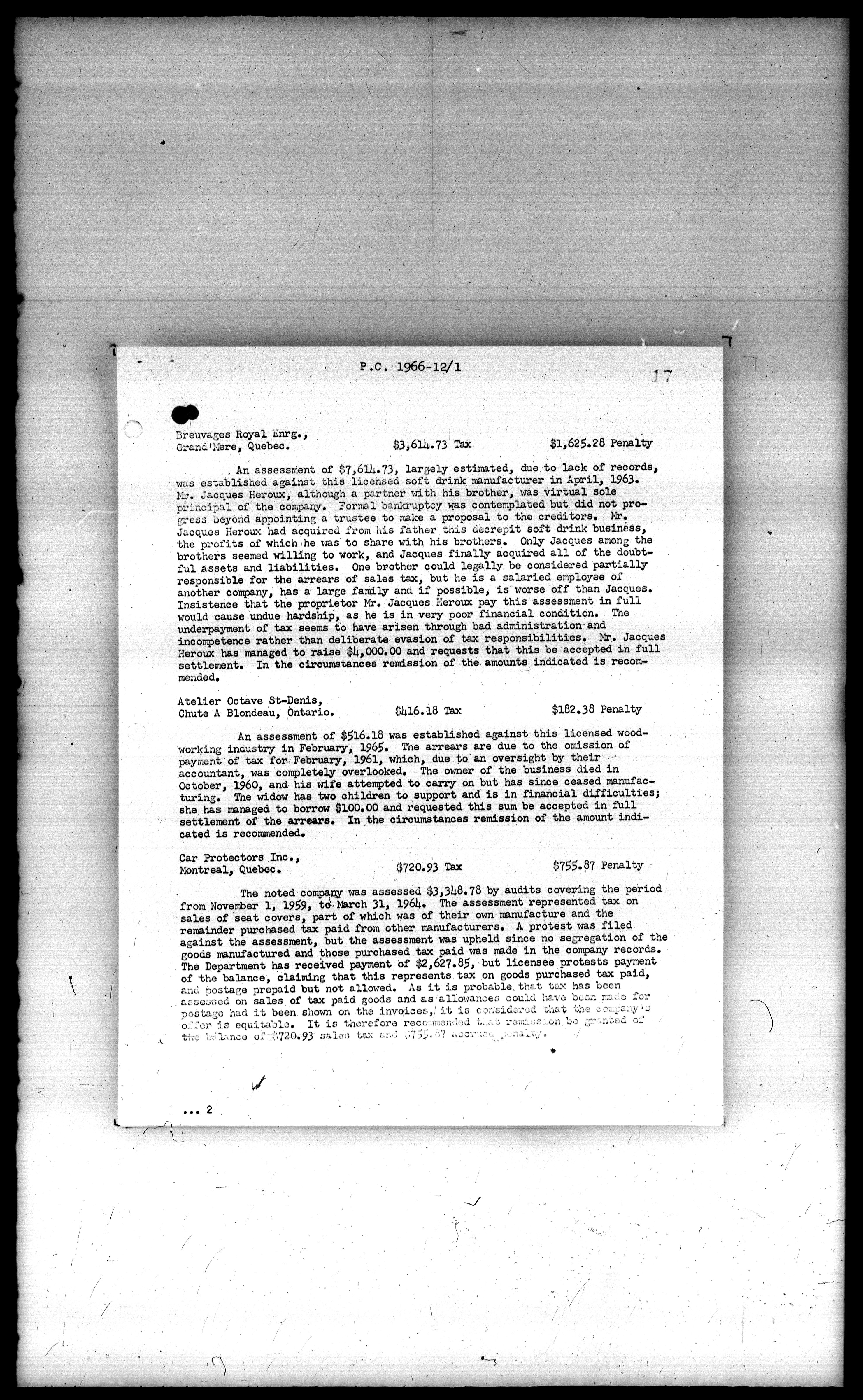 Privy Council Office, Orders in Council : Minutes, annexes and reports - 5400