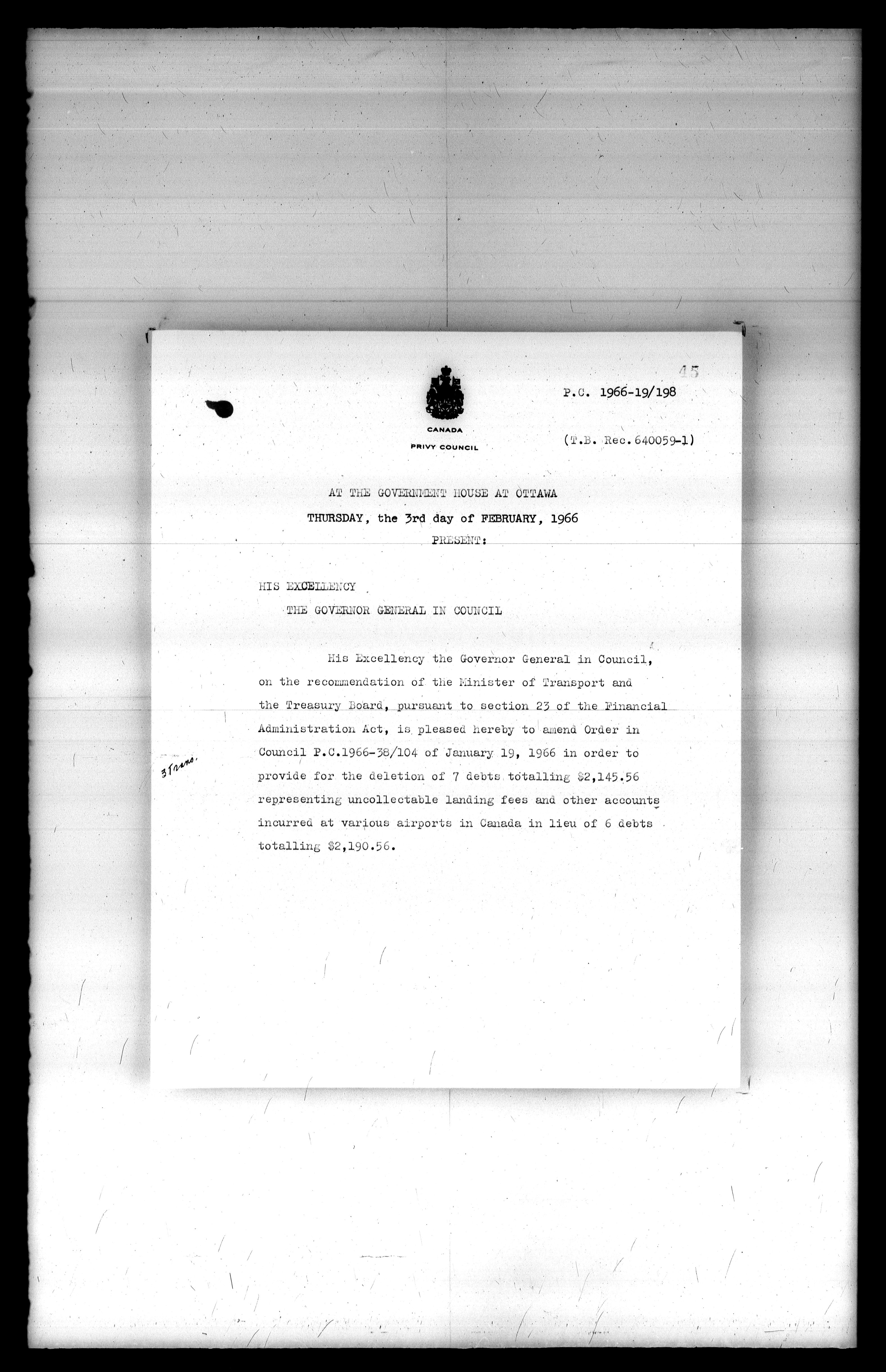 Privy Council Office, Orders in Council : Minutes, annexes and reports : T-5401