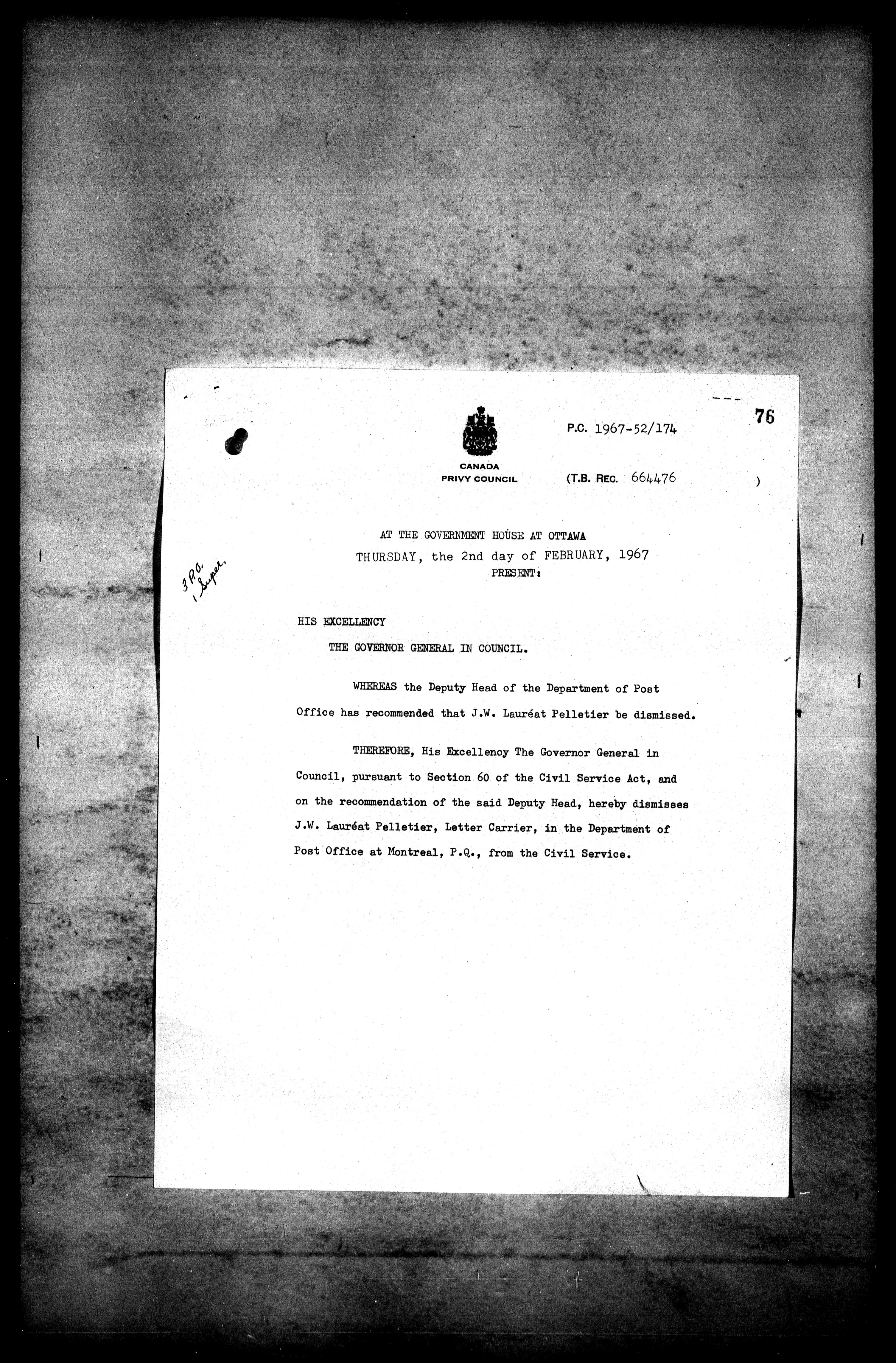 Privy Council Office, Orders in Council : Minutes, annexes and reports - 5413