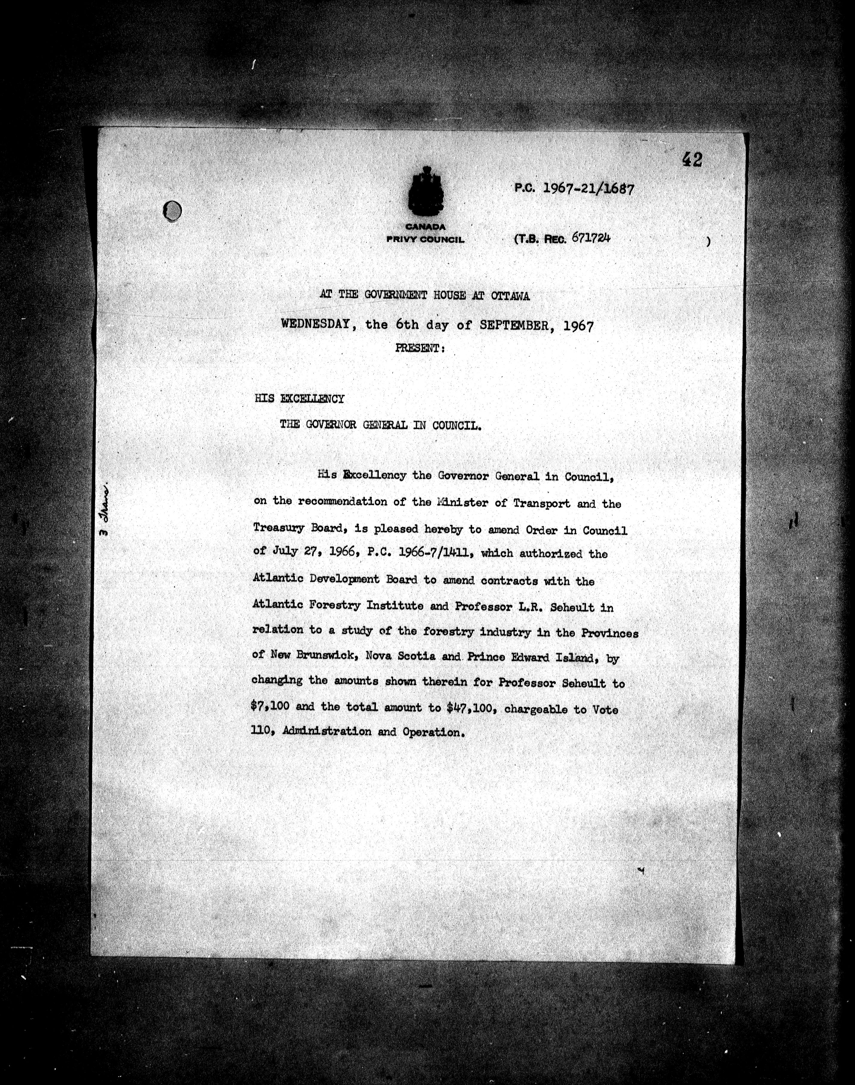 Privy Council Office, Orders in Council : Minutes, annexes and reports - 5420