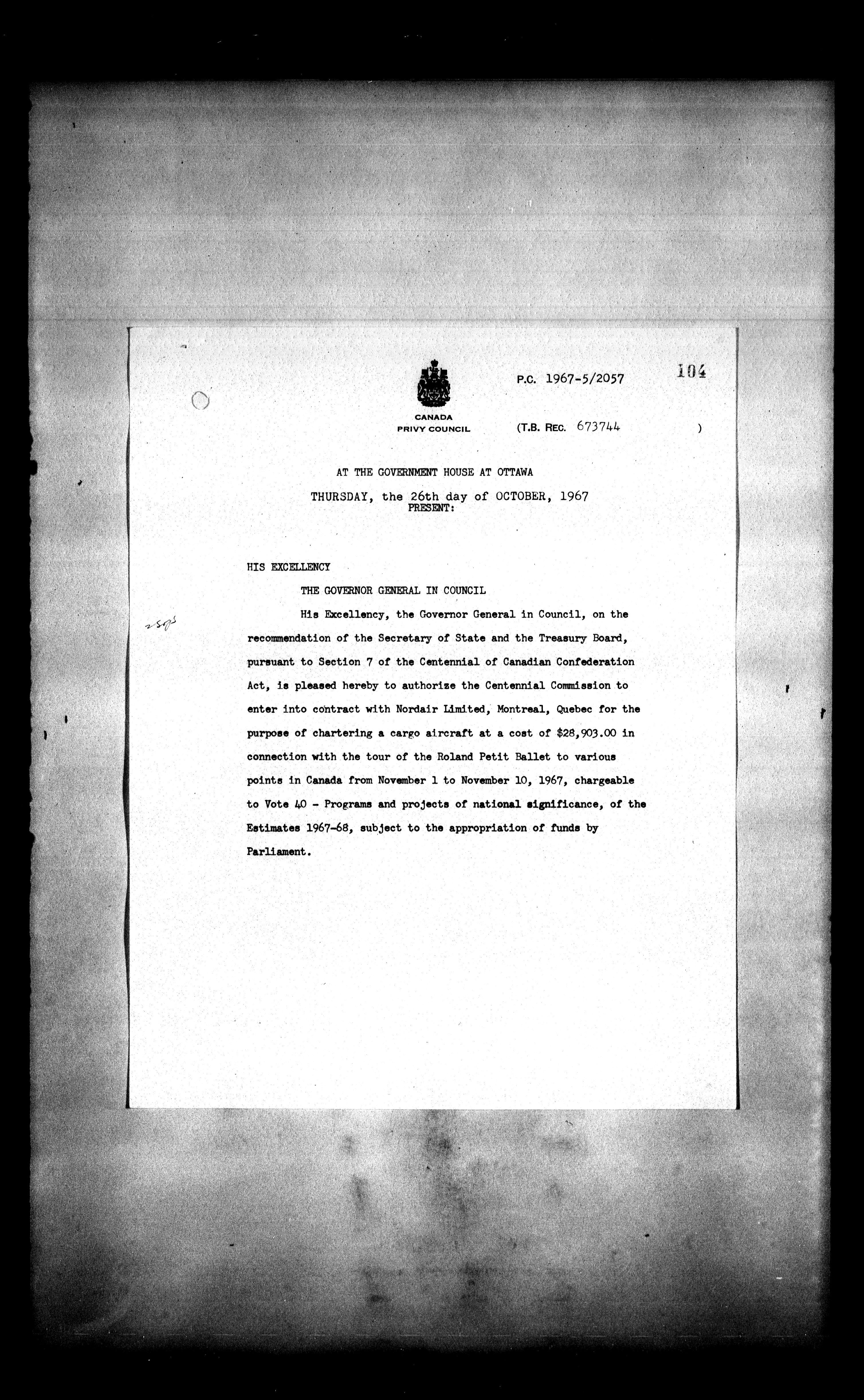 Privy Council Office, Orders in Council : Minutes, annexes and reports - 5421