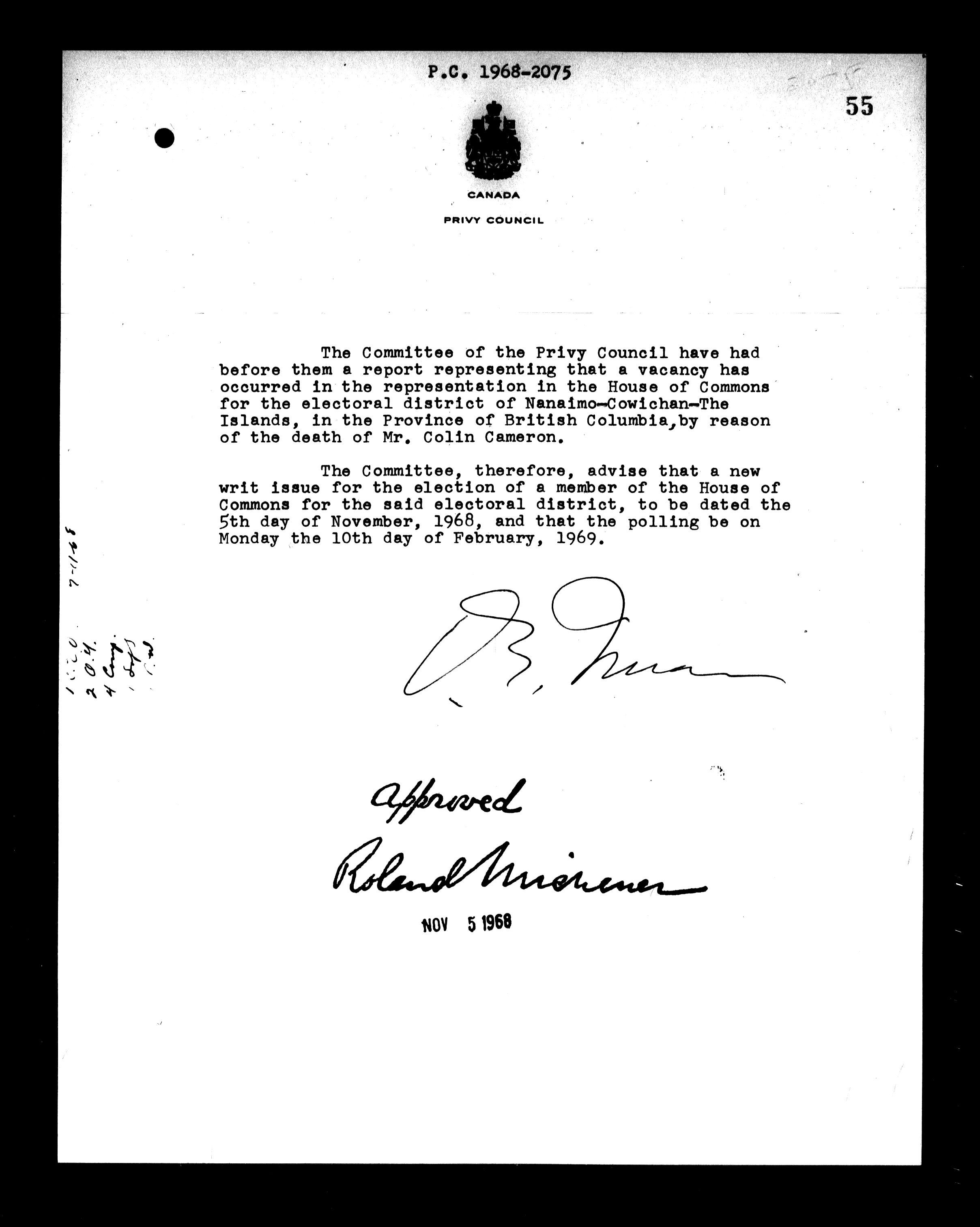 Privy Council Office, Orders in Council : Minutes, annexes and reports - 5434