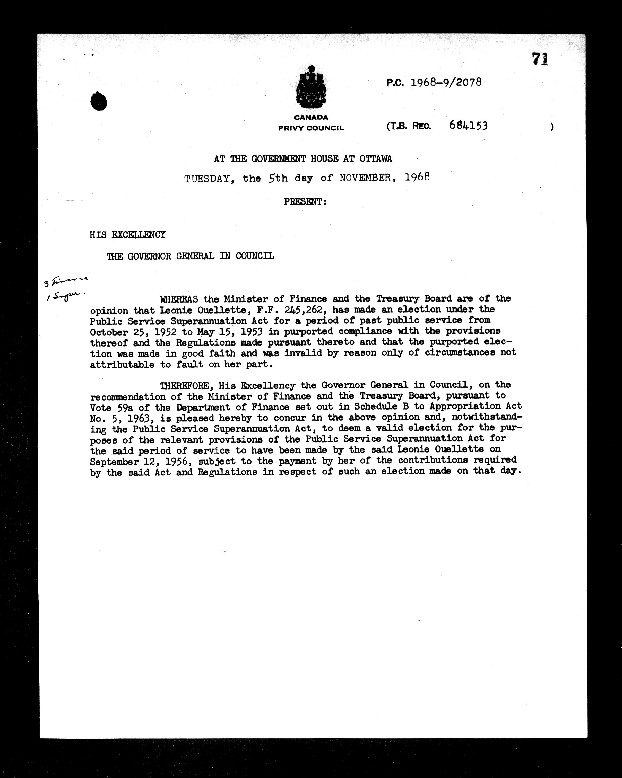 Privy Council Office, Orders in Council : Minutes, annexes and reports - 5434
