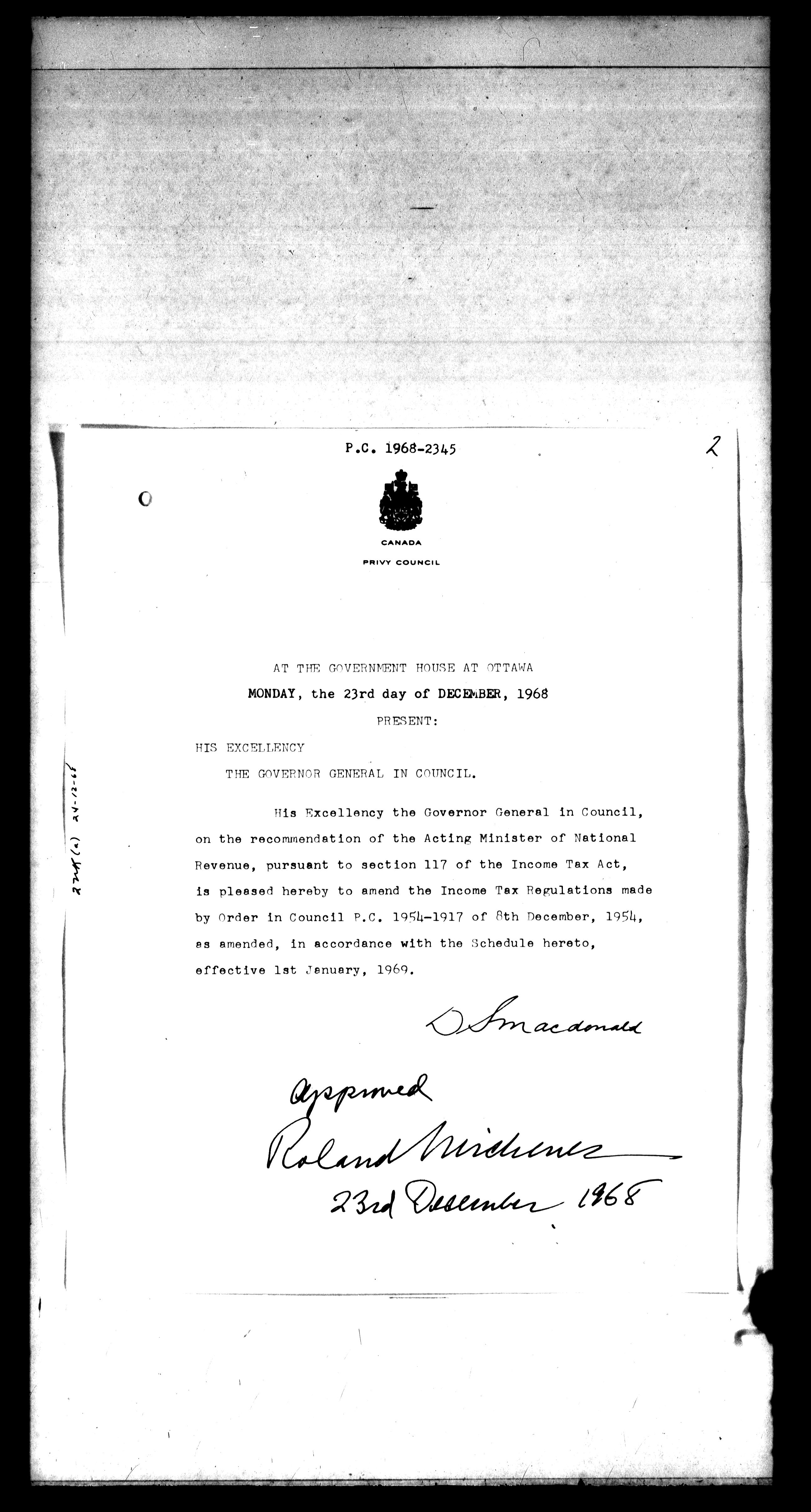 Privy Council Office, Orders in Council : Minutes, annexes and reports - 5435