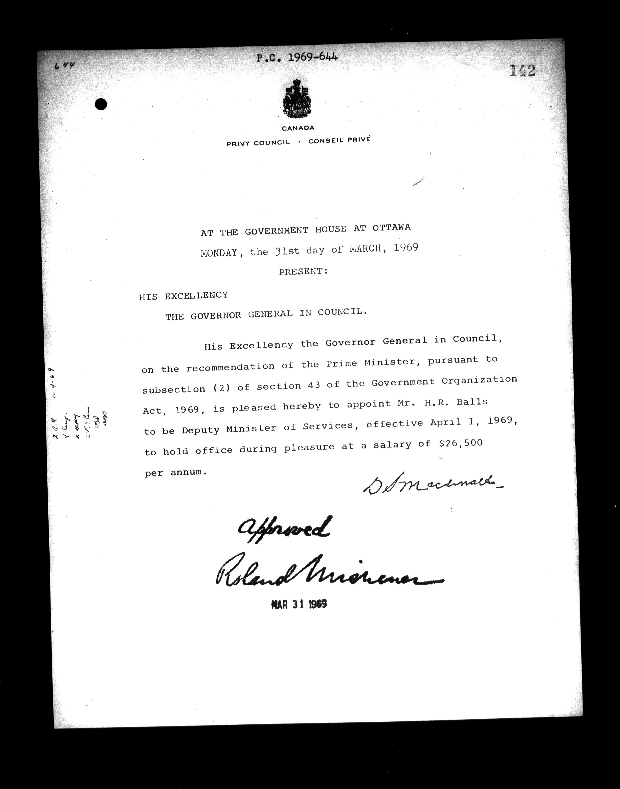 Privy Council Office, Orders in Council : Minutes, annexes and reports - 5438
