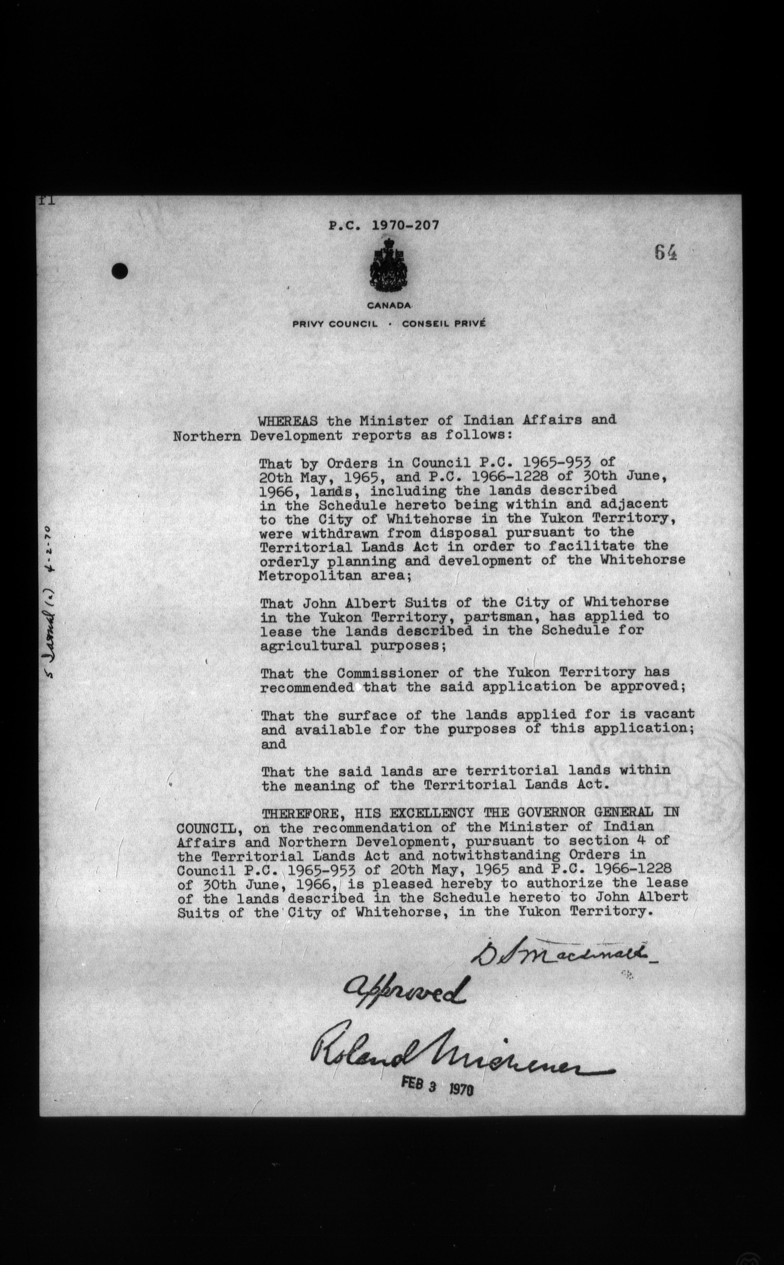 Privy Council Office, Orders in Council : Minutes, annexes and reports : T-5449