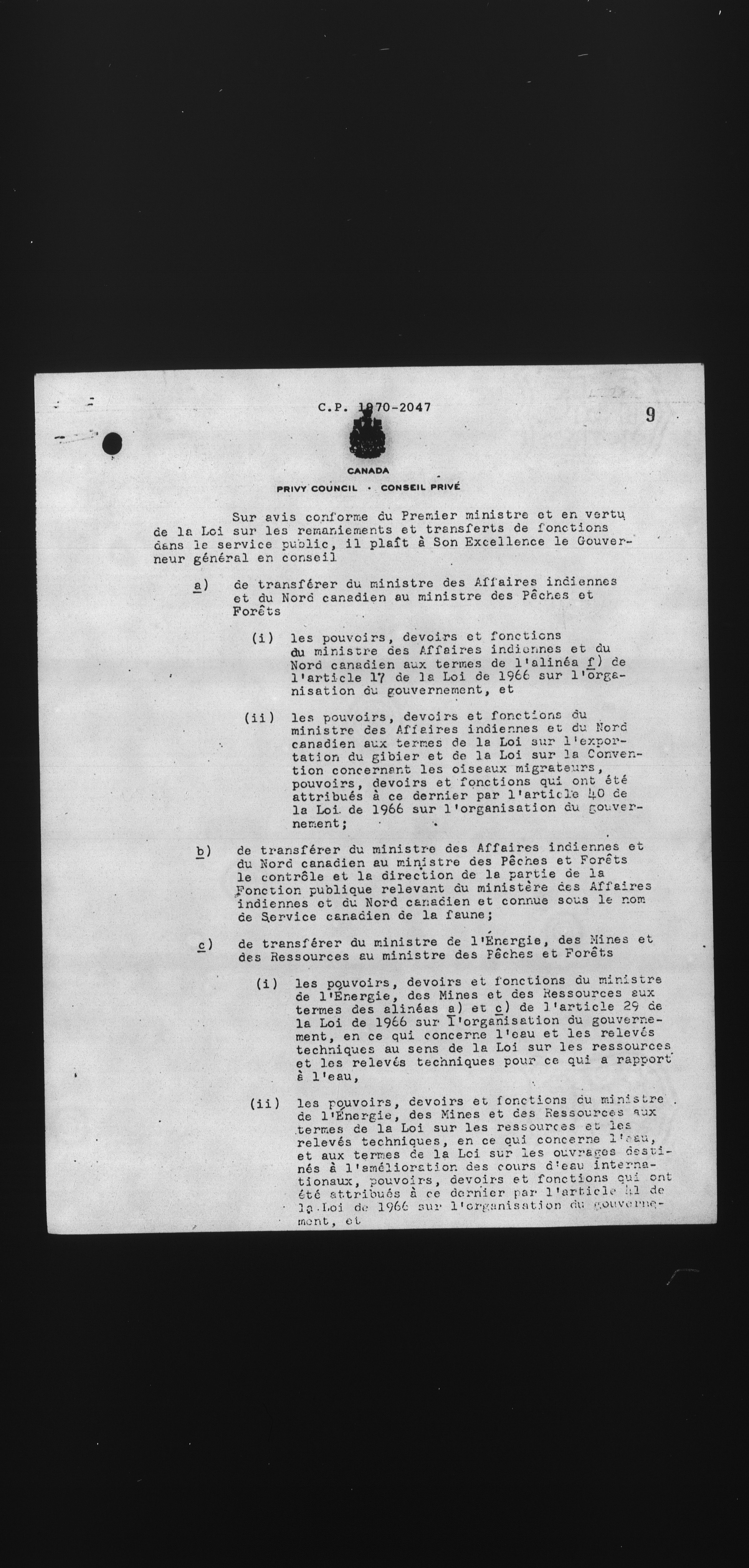 Privy Council Office, Orders in Council : Minutes, annexes and reports