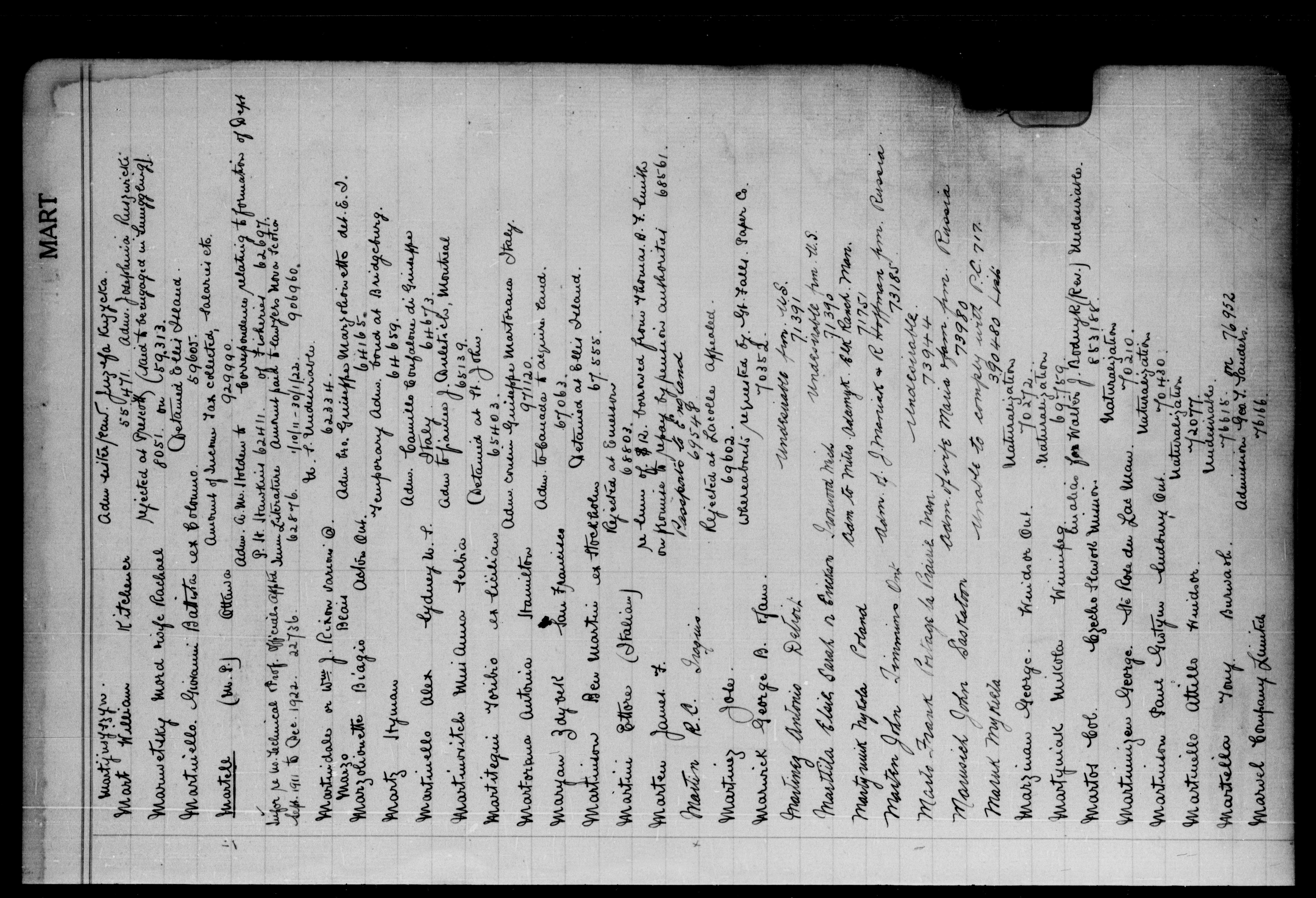 Alphabetical indexes to subject, policy and case files in the First Central Registry series of the Immigration Program, 1892-1950 - 5583