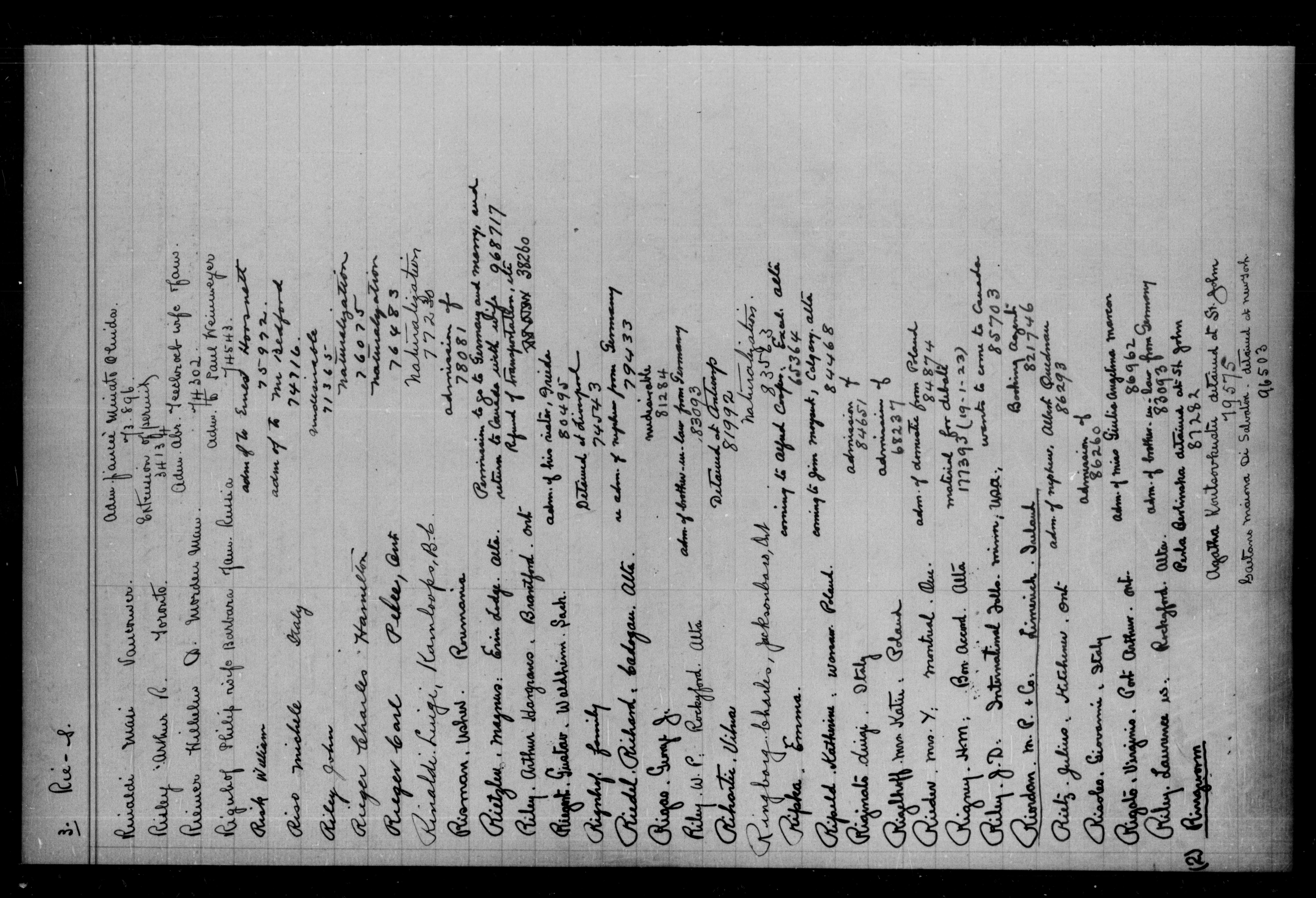 Alphabetical indexes to subject, policy and case files in the First Central Registry series of the Immigration Program, 1892-1950 - 5586