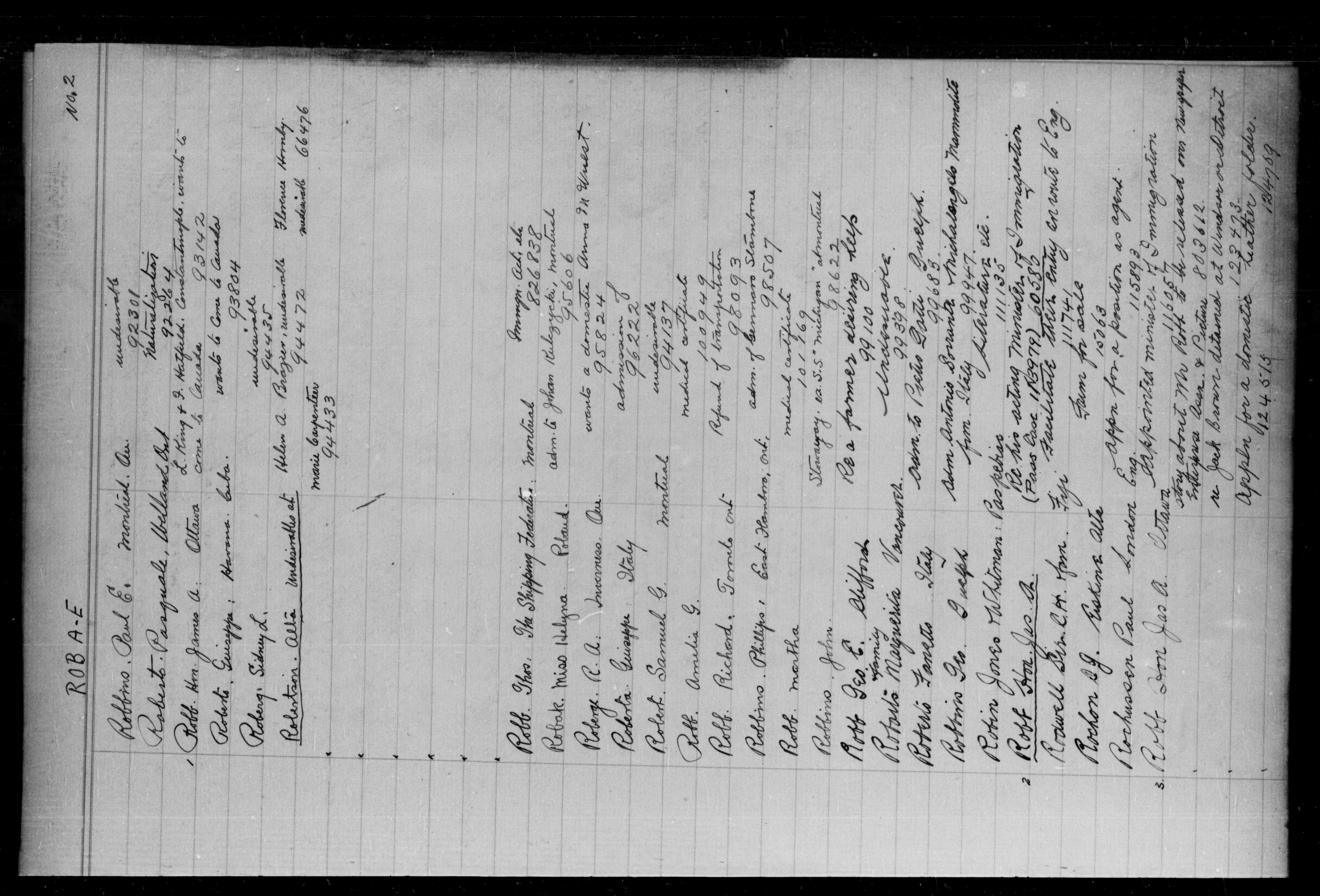 Alphabetical indexes to subject, policy and case files in the First Central Registry series of the Immigration Program, 1892-1950 - 5586