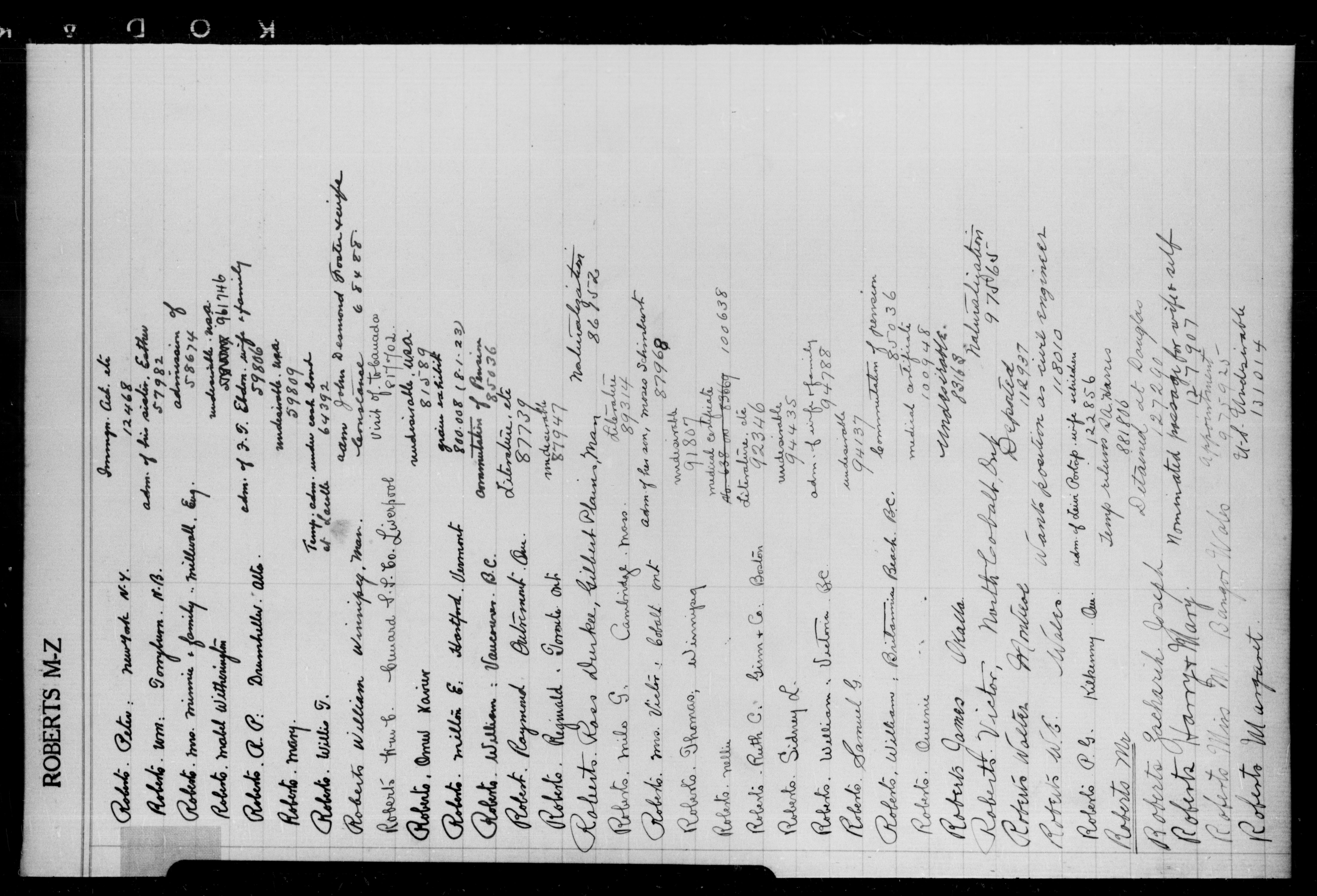 Alphabetical indexes to subject, policy and case files in the First Central Registry series of the Immigration Program, 1892-1950 - 5586