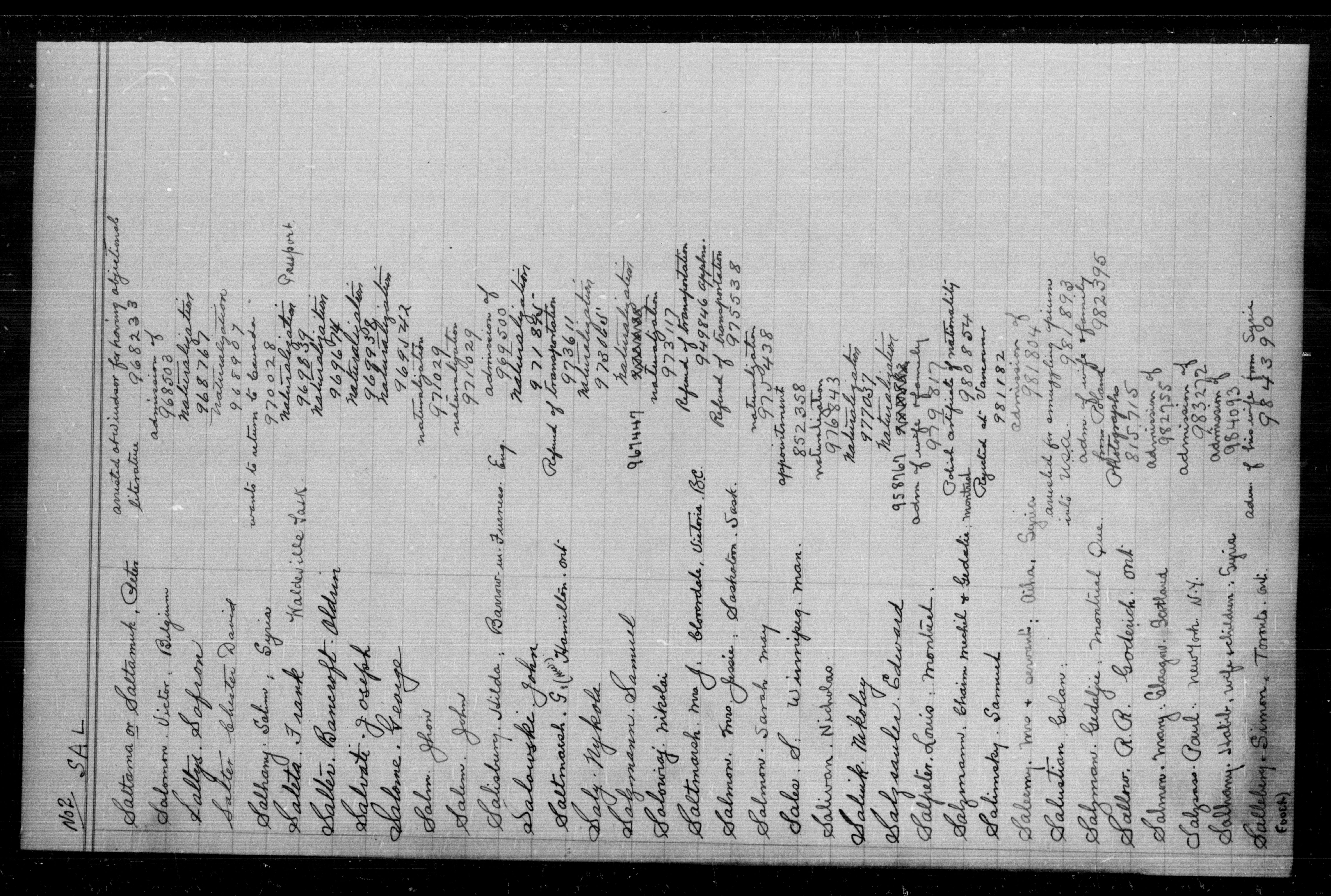Alphabetical indexes to subject, policy and case files in the First Central Registry series of the Immigration Program, 1892-1950 - 5588