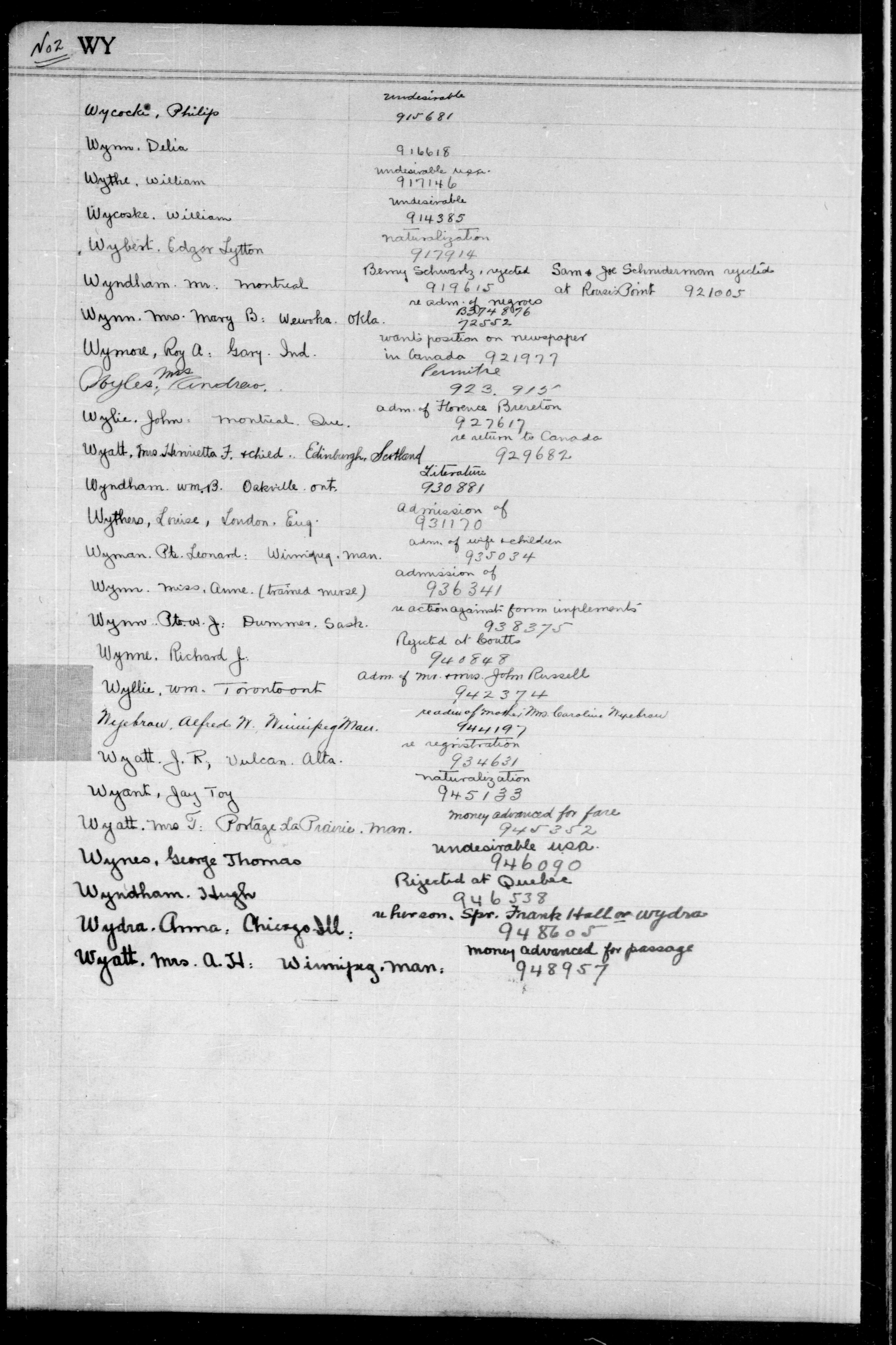 Alphabetical indexes to subject, policy and case files in the First Central Registry series of the Immigration Program, 1892-1950 - 5591