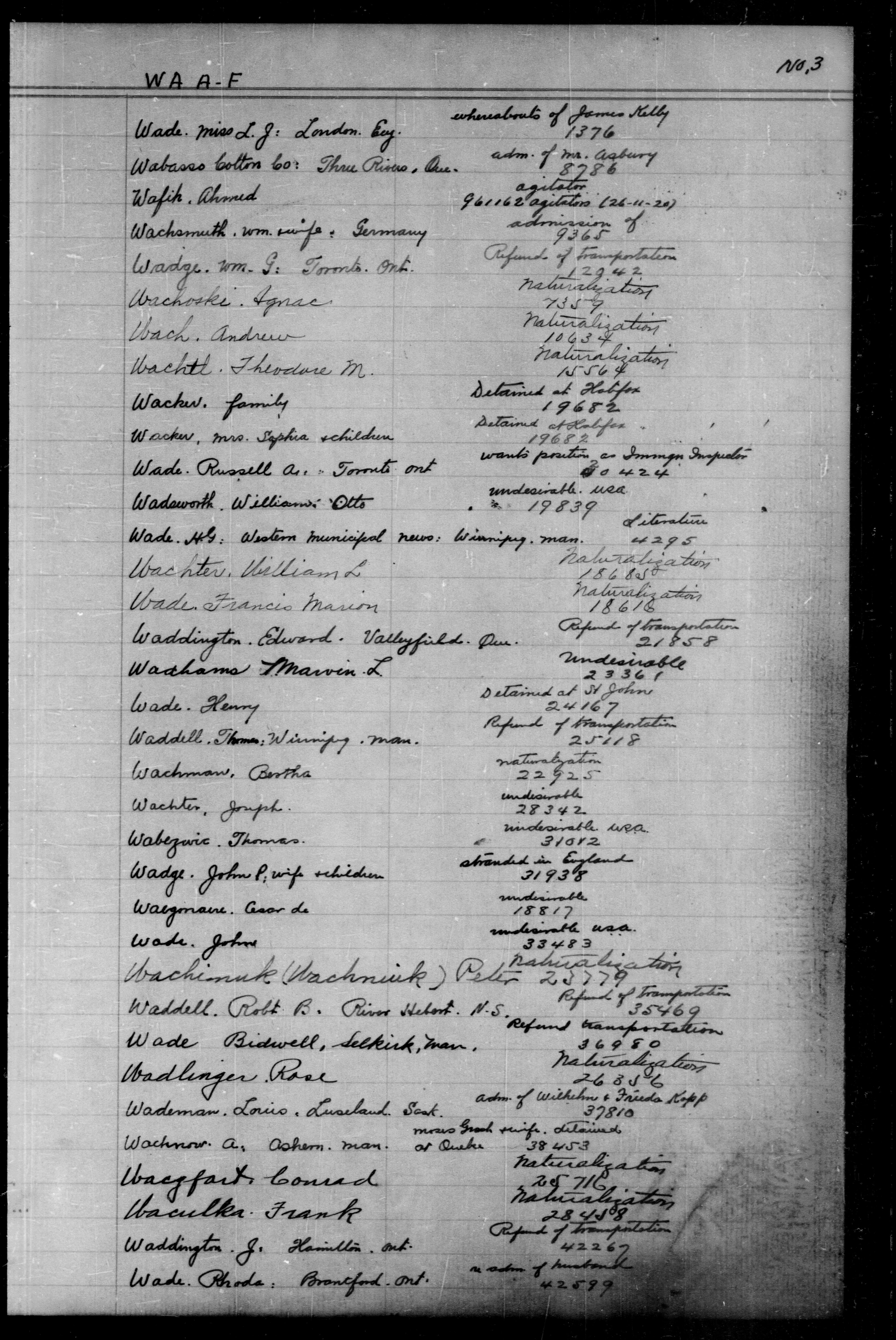 Alphabetical indexes to subject, policy and case files in the First Central Registry series of the Immigration Program, 1892-1950 - 5591