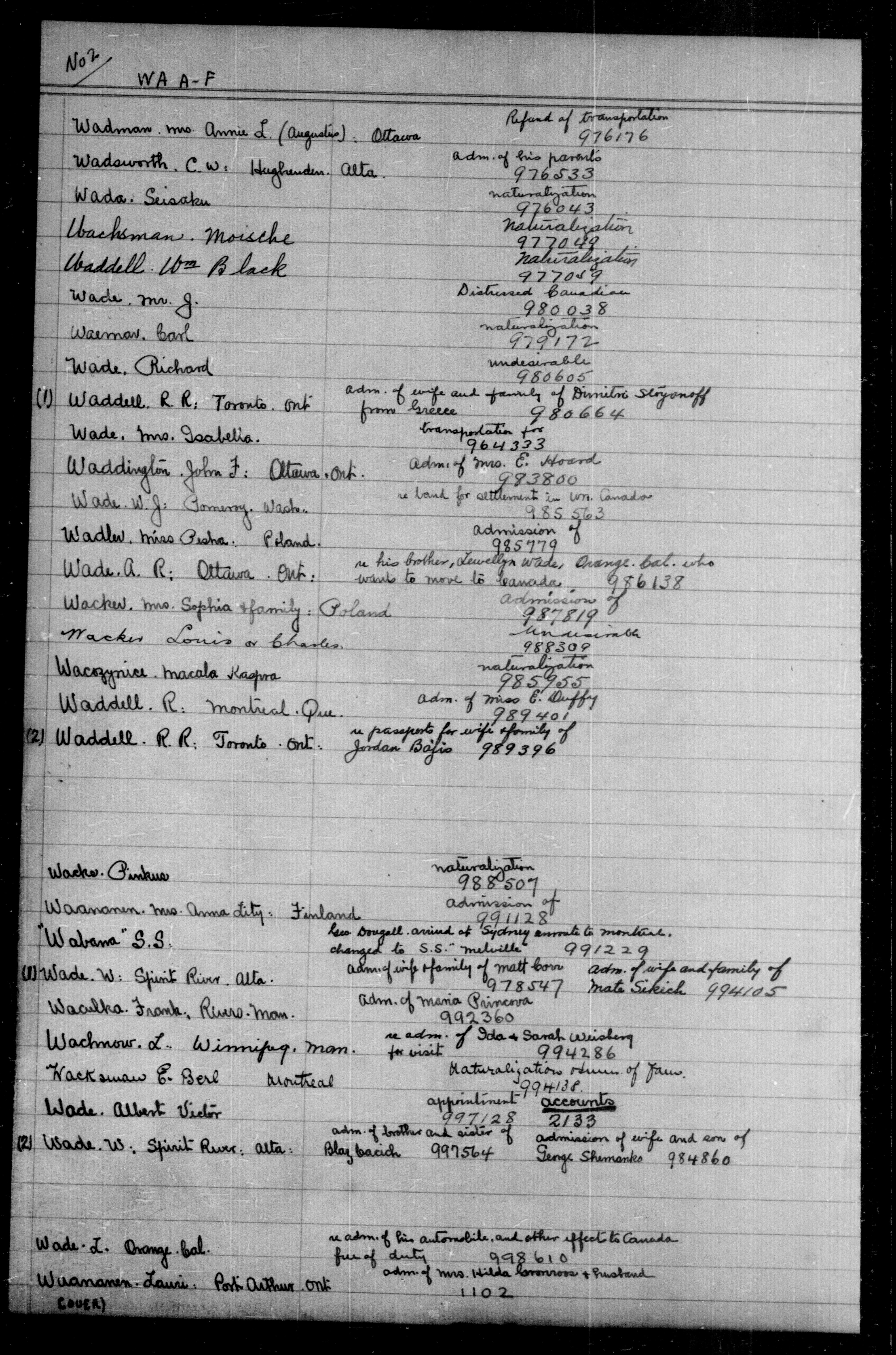 Alphabetical indexes to subject, policy and case files in the First Central Registry series of the Immigration Program, 1892-1950 - 5591