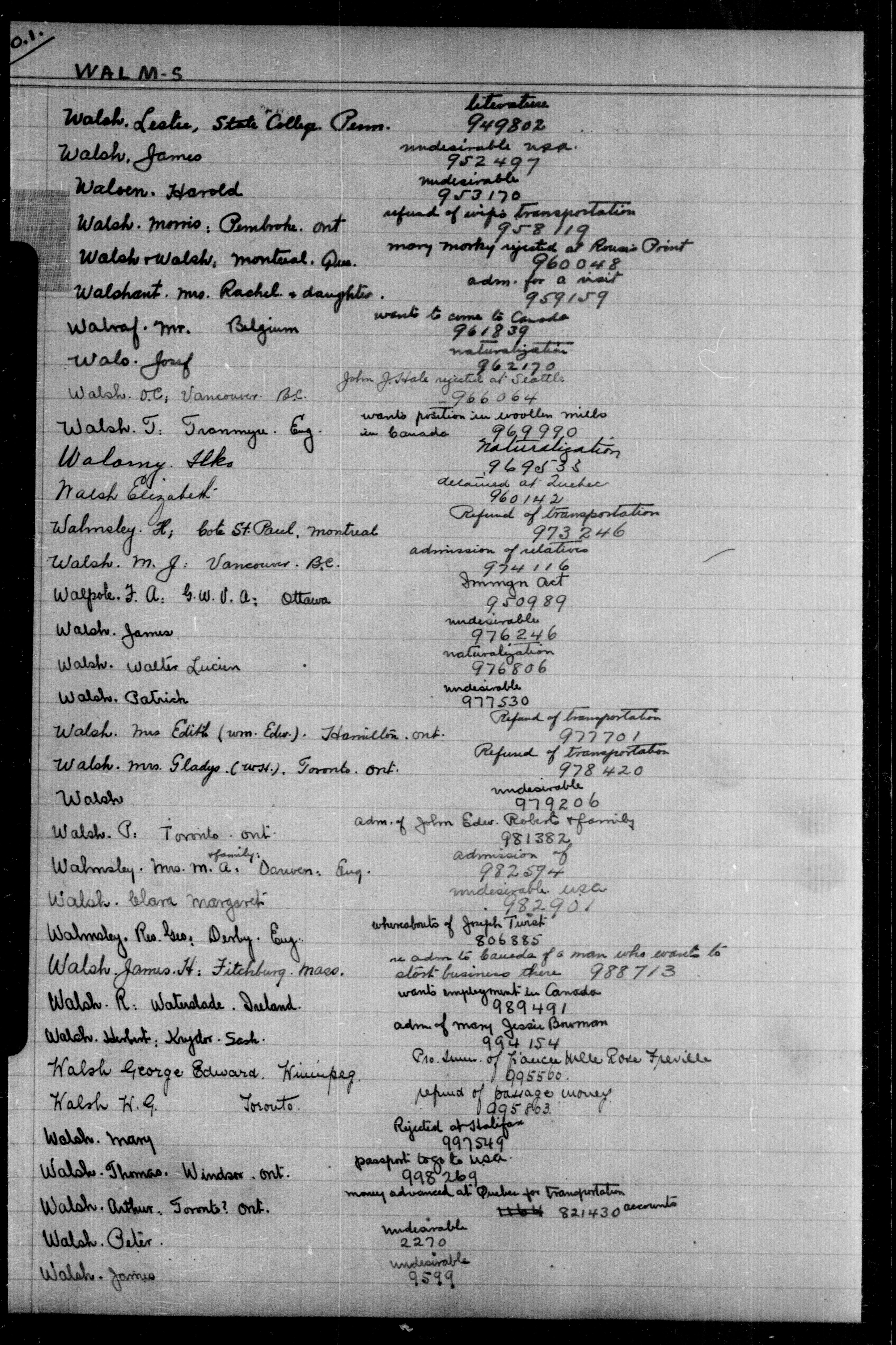 Alphabetical indexes to subject, policy and case files in the First Central Registry series of the Immigration Program, 1892-1950 - 5591