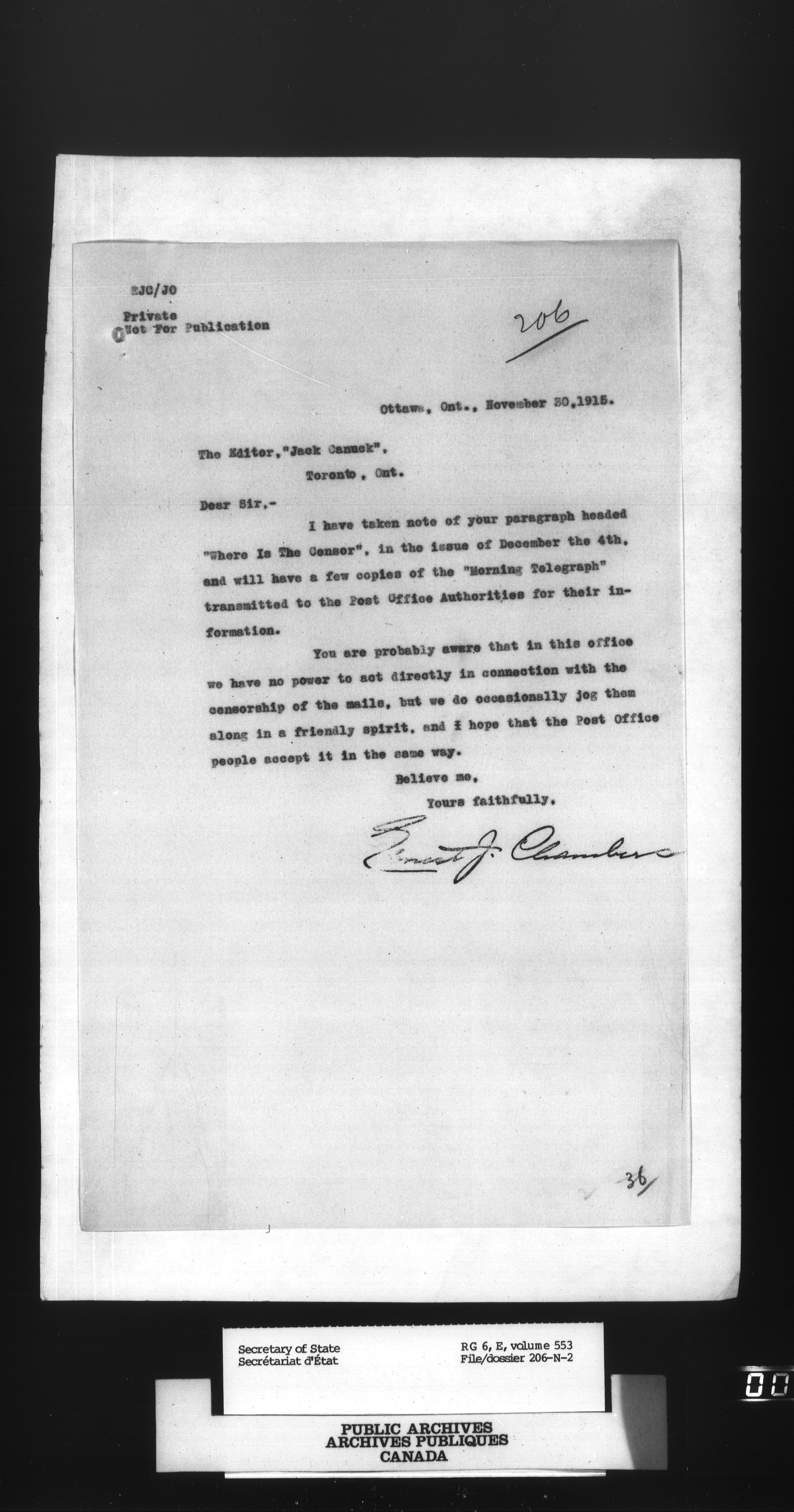 Secretary of State : Chief Press Censor, 1915-1920 - 56